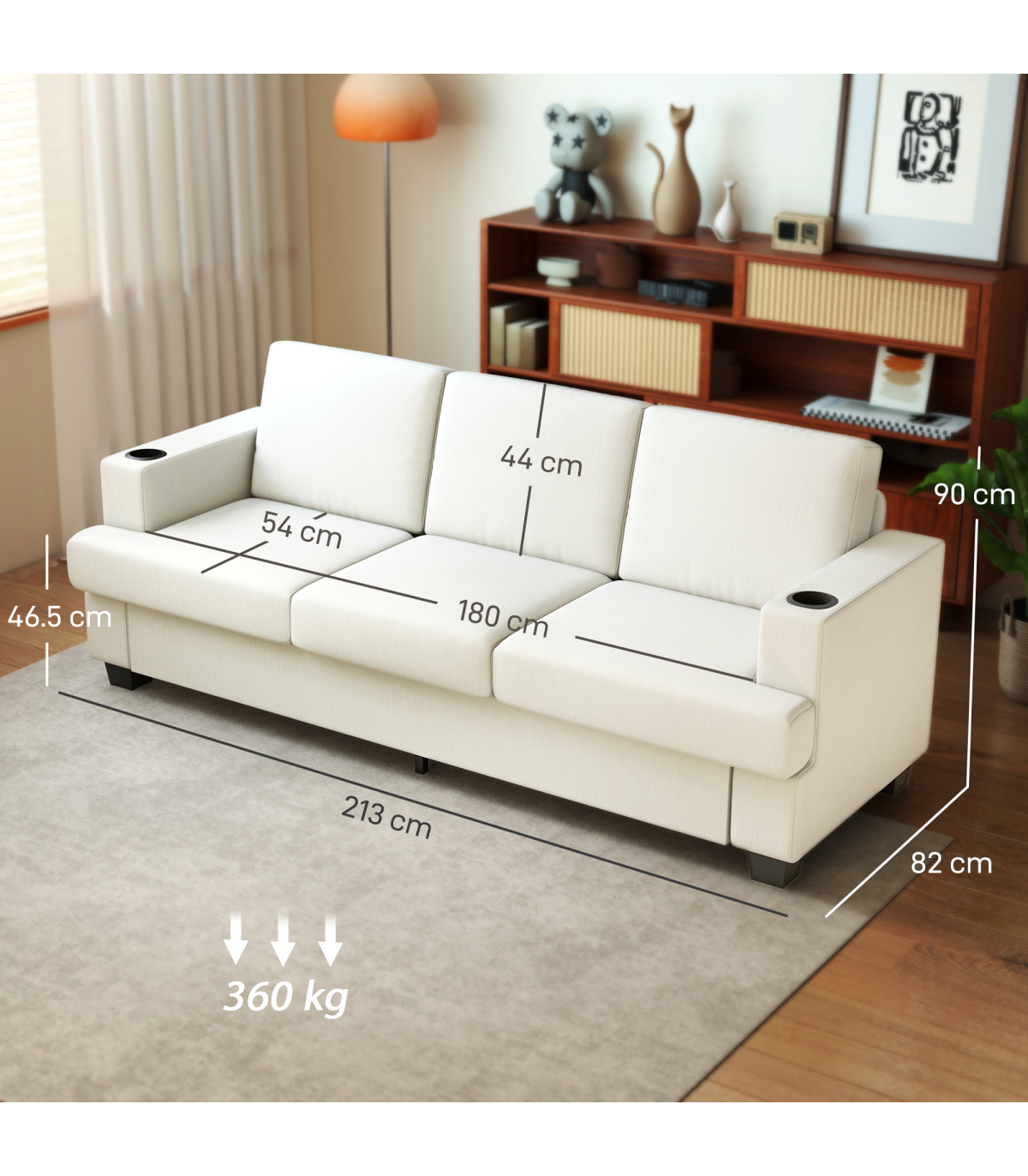 ● Armrest Size: 63L x 15W cm