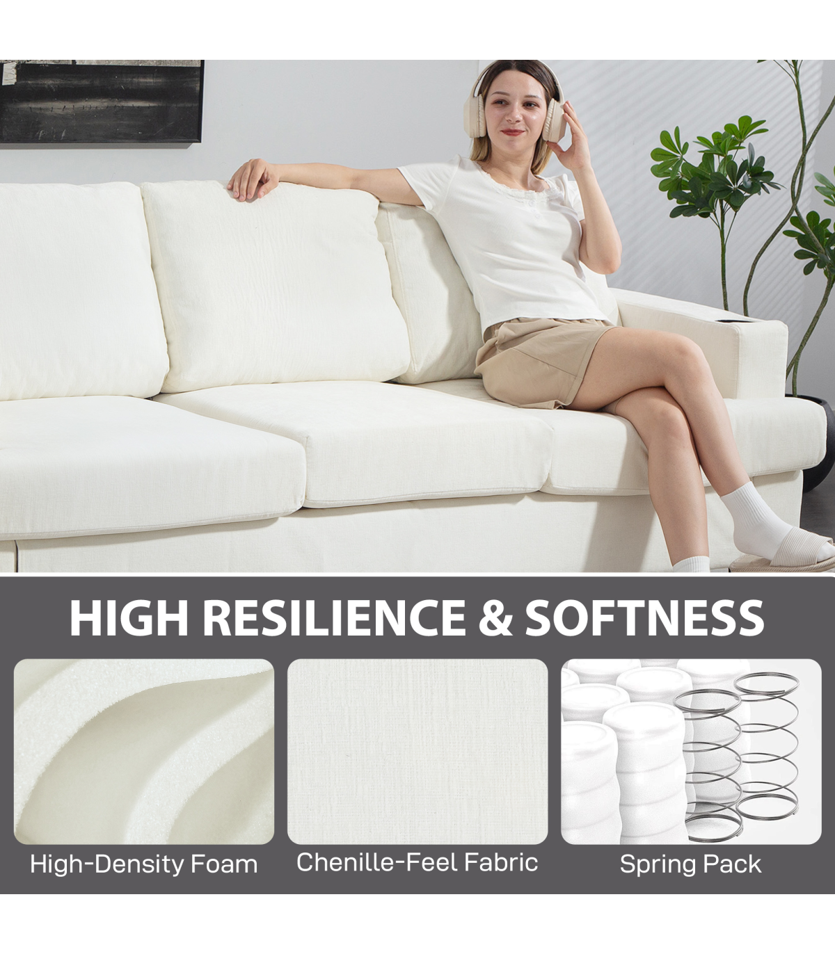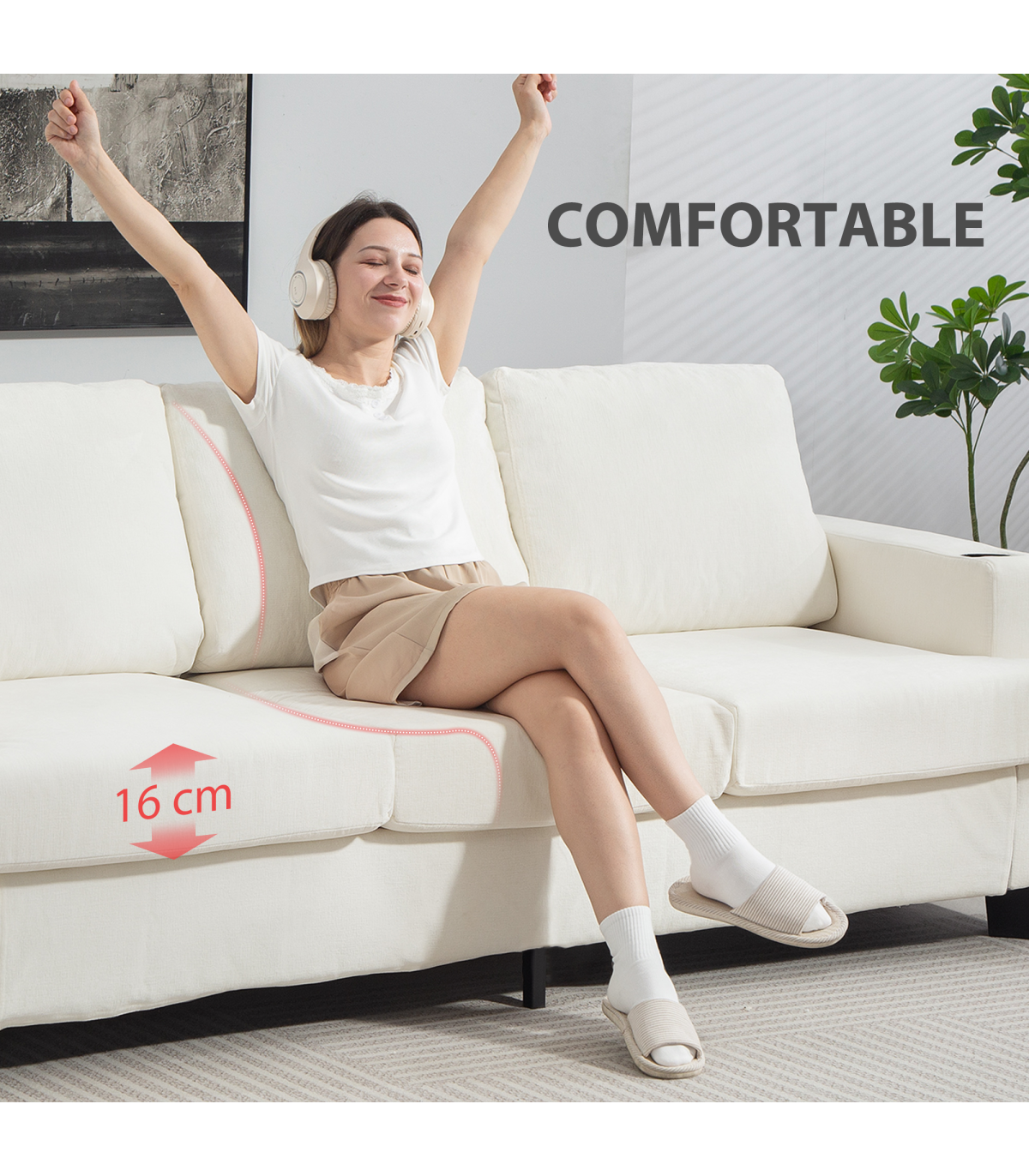 ● 16 cm thick cushions with high-density foam for comfort