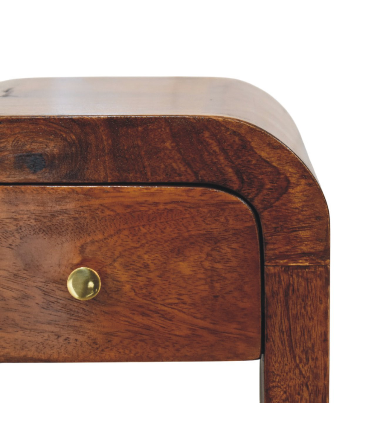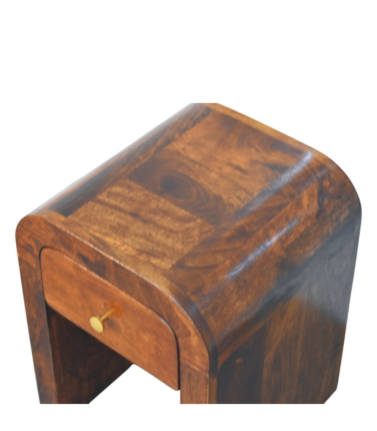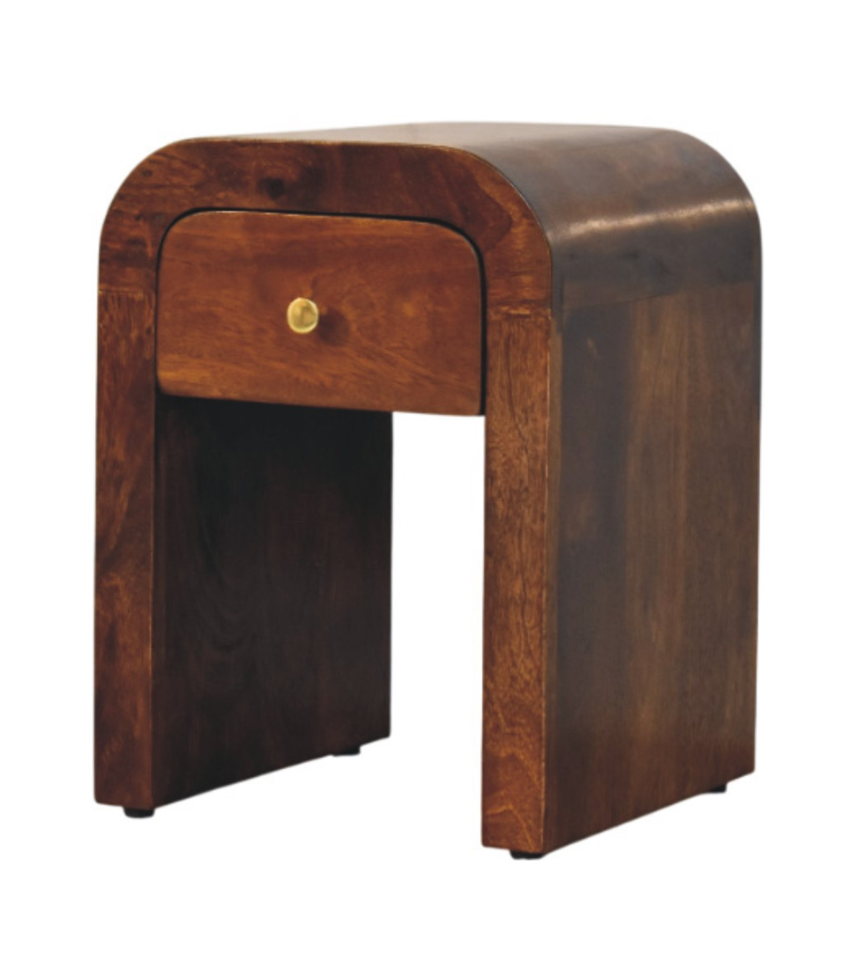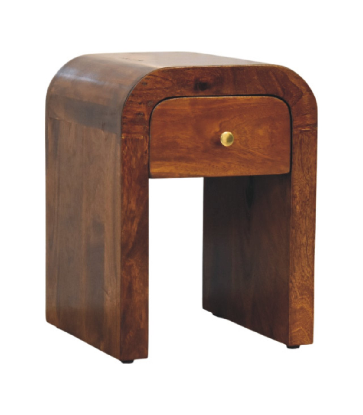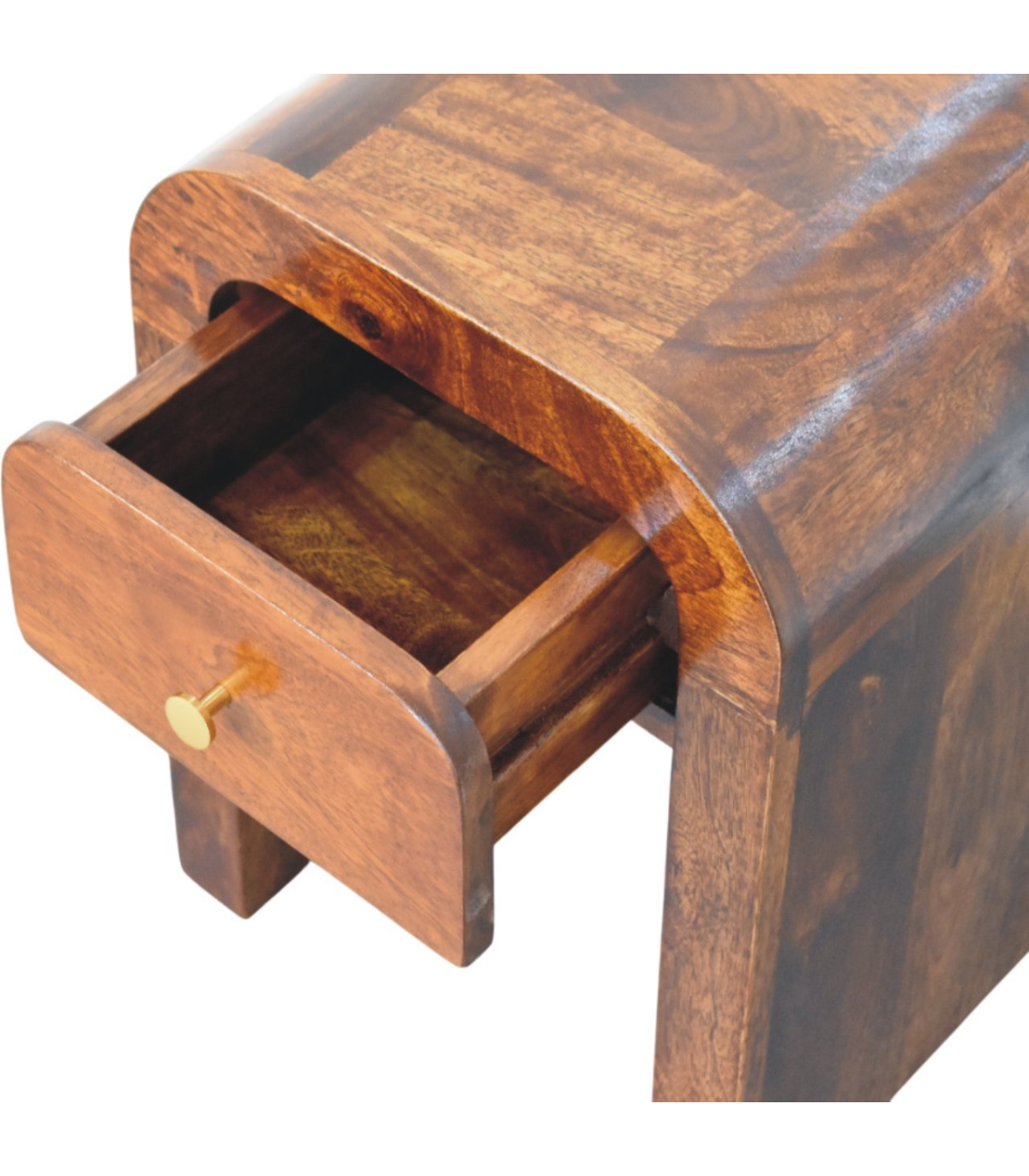 Artisan Furniture Solid Wood Mini Darcy Chestnut Nightstand with Curved Edges, Brown, 1 Drawer