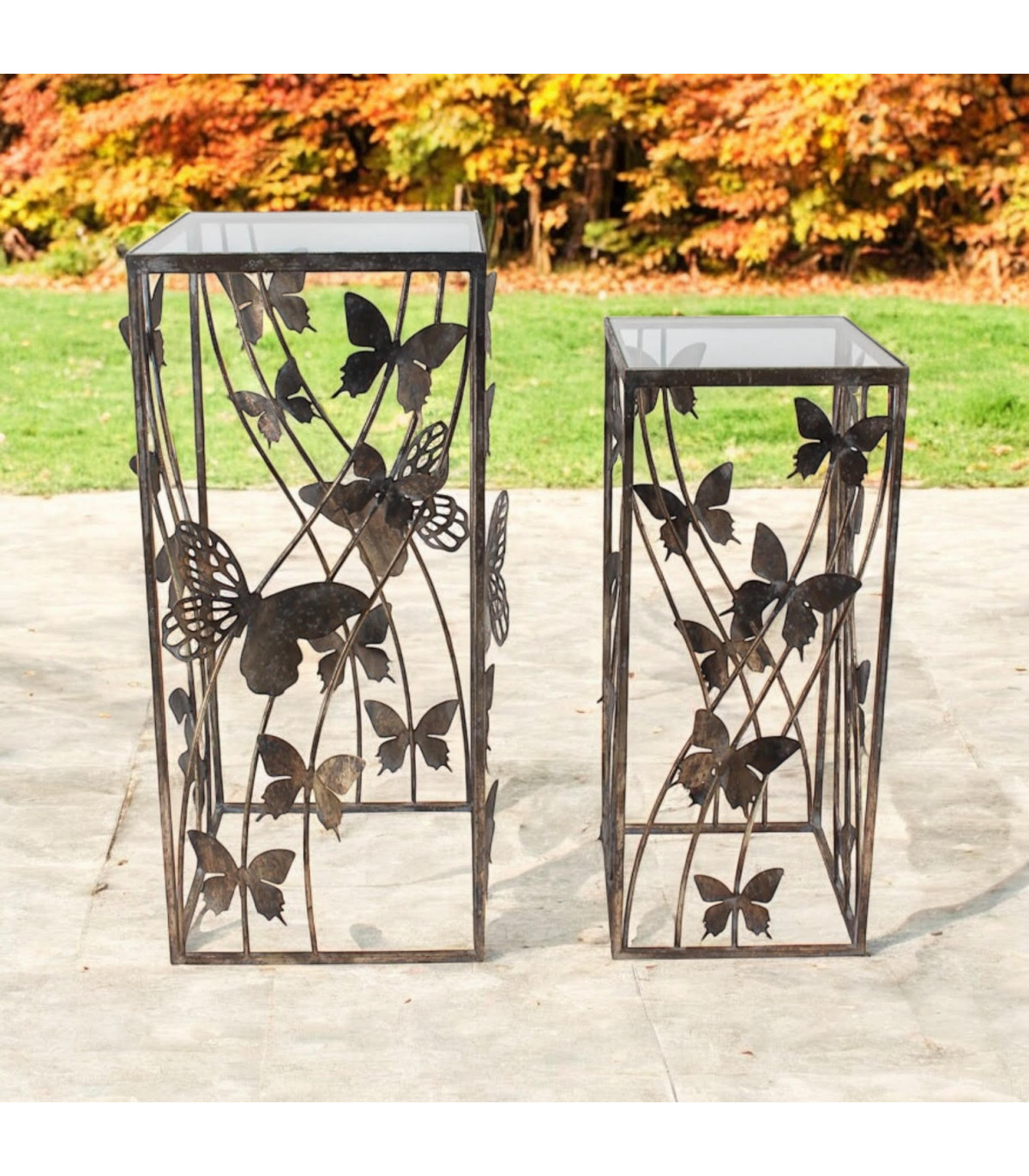 Add a touch of sophistication to your home decor with these beautifully crafted metal tables, 27X27X64CM33X33X75CM, Butterfly design