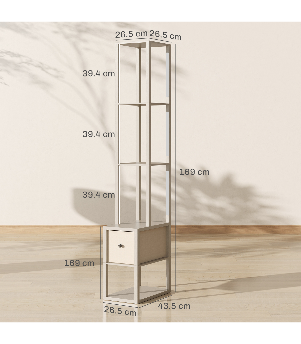 - Bottom/Four-tier Shelf Size: 43.5L x 26.5W x 22H cm
