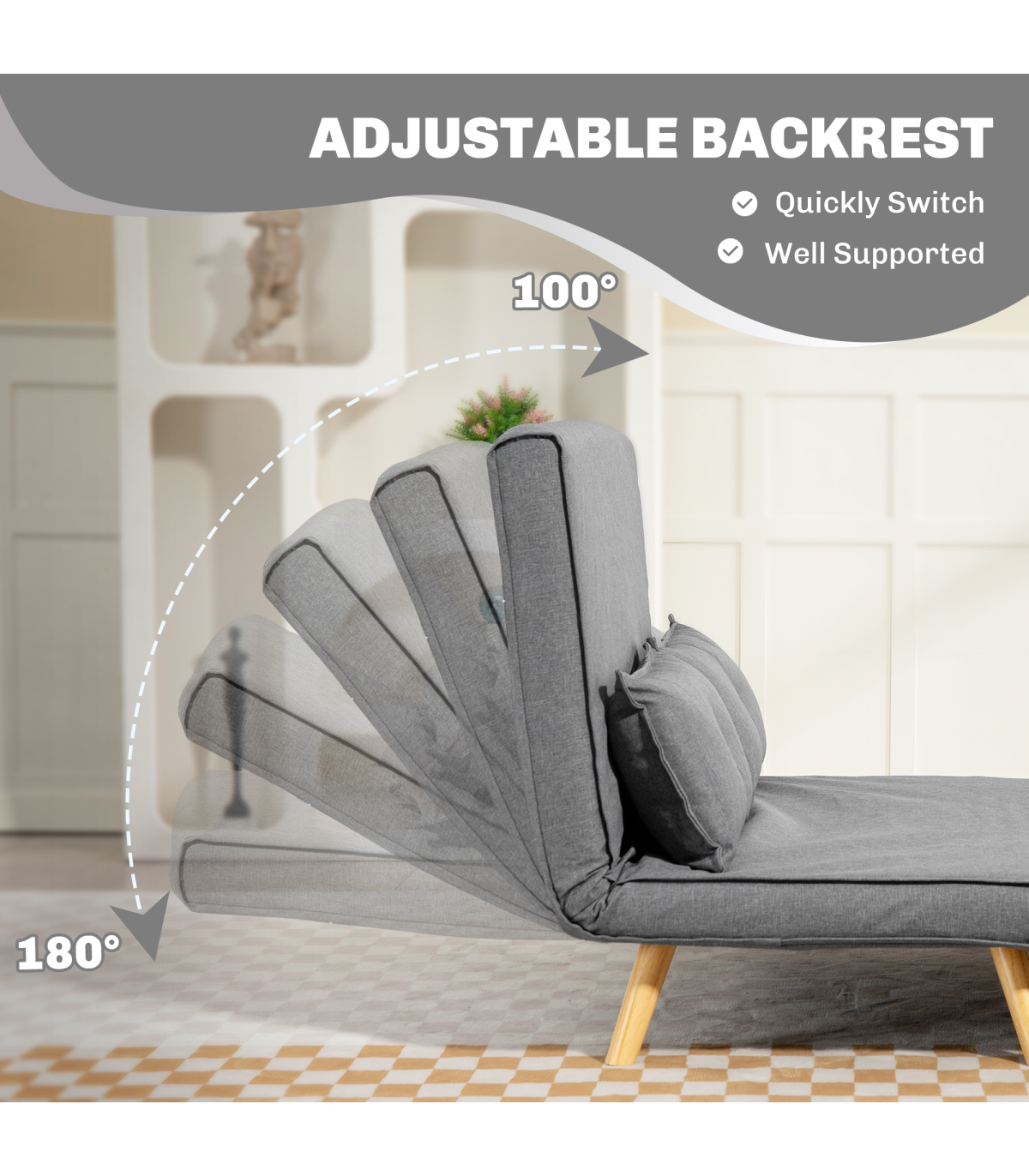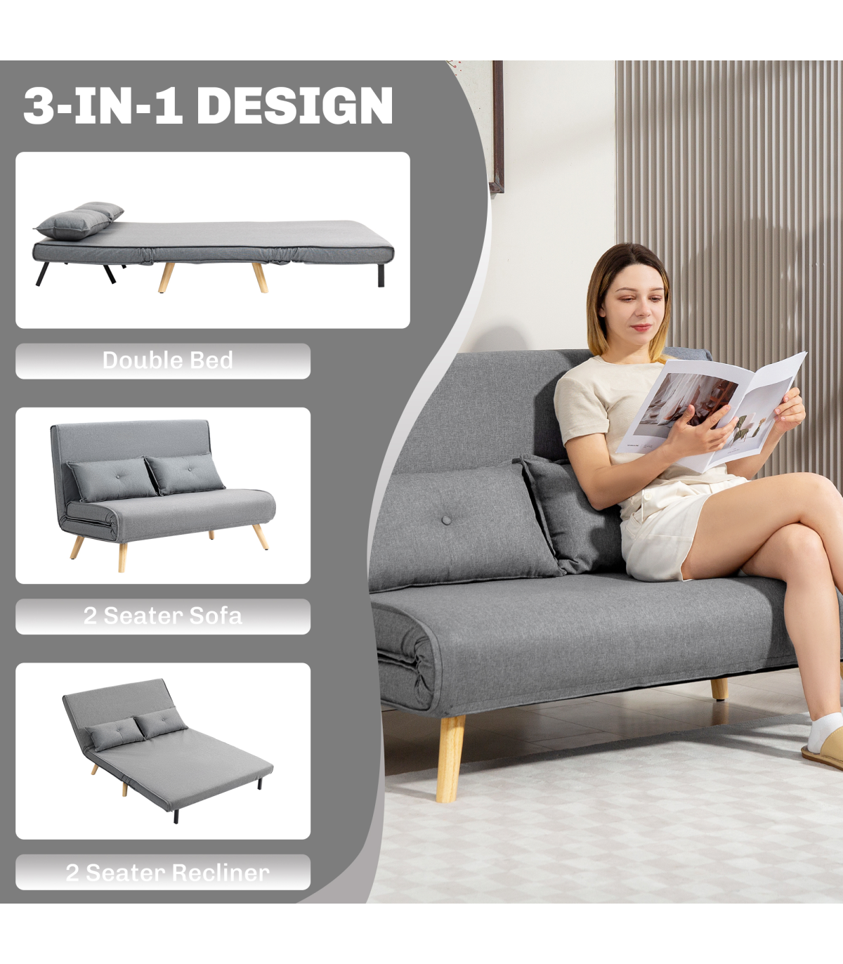 - Click-clack mechanism converts sofa into a chaise lounge or a bed super easily