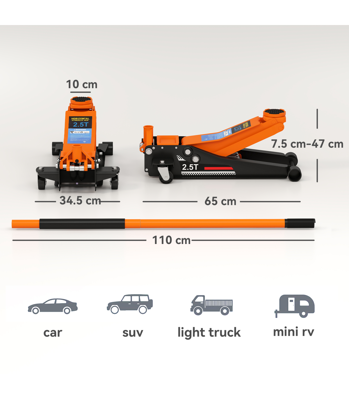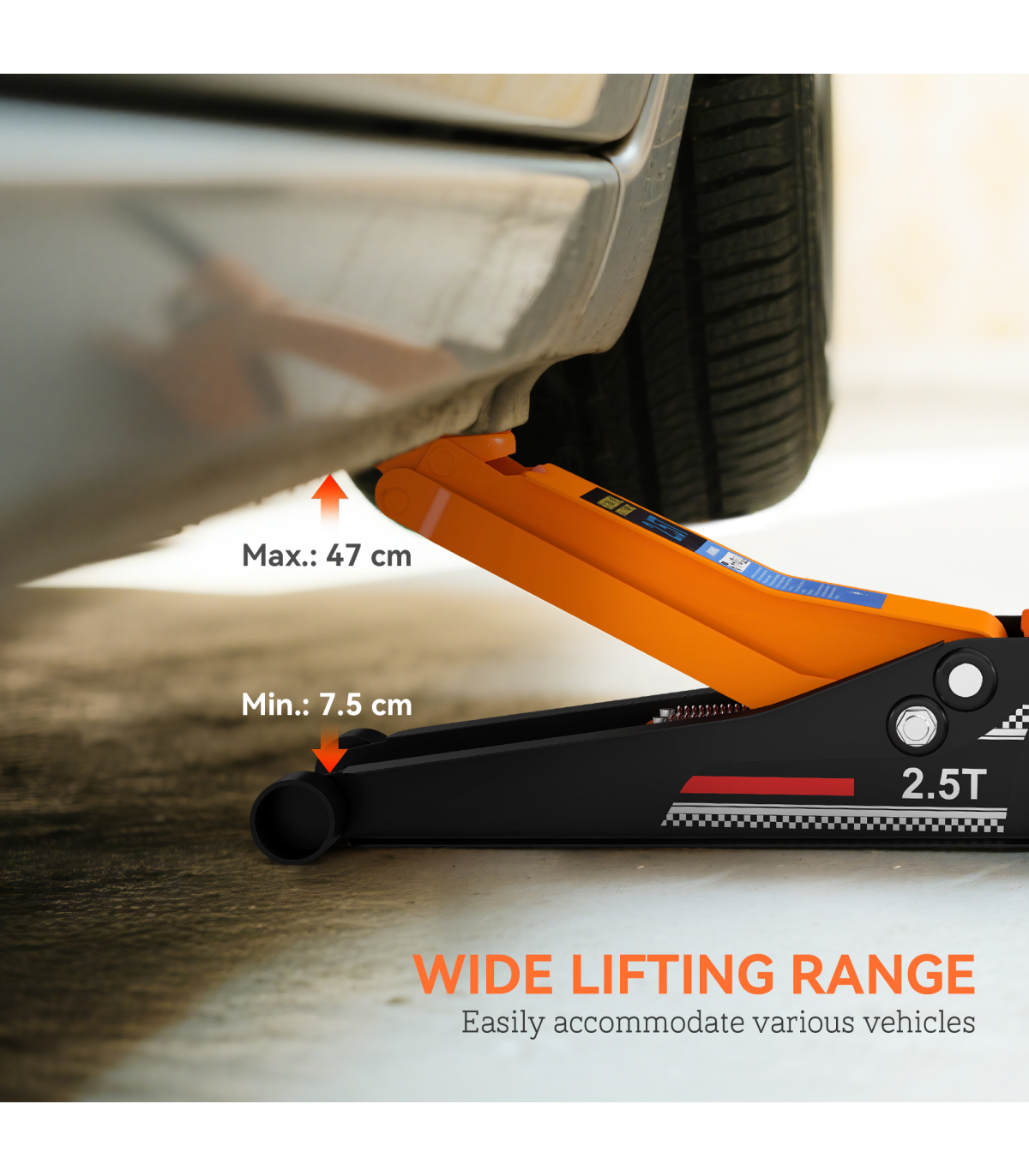 - Lifts from 7.5cm to 47cm for different vehicle heights