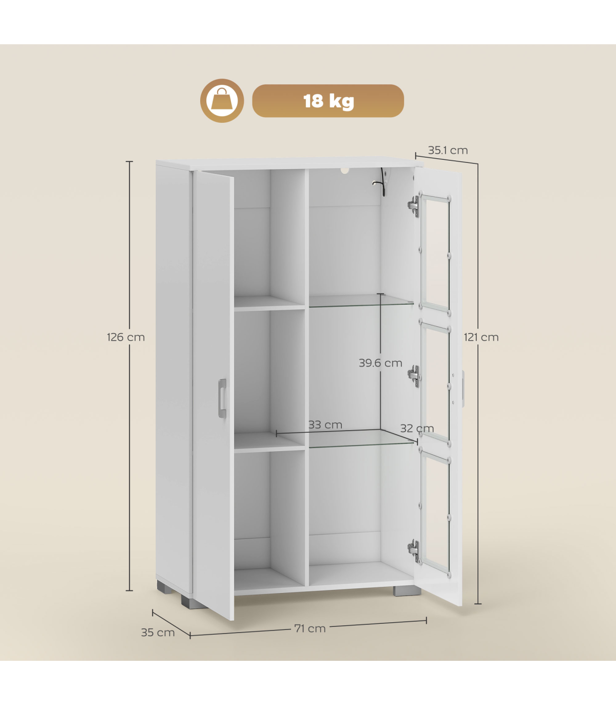 - Material: MDF, Glass, Aluminium