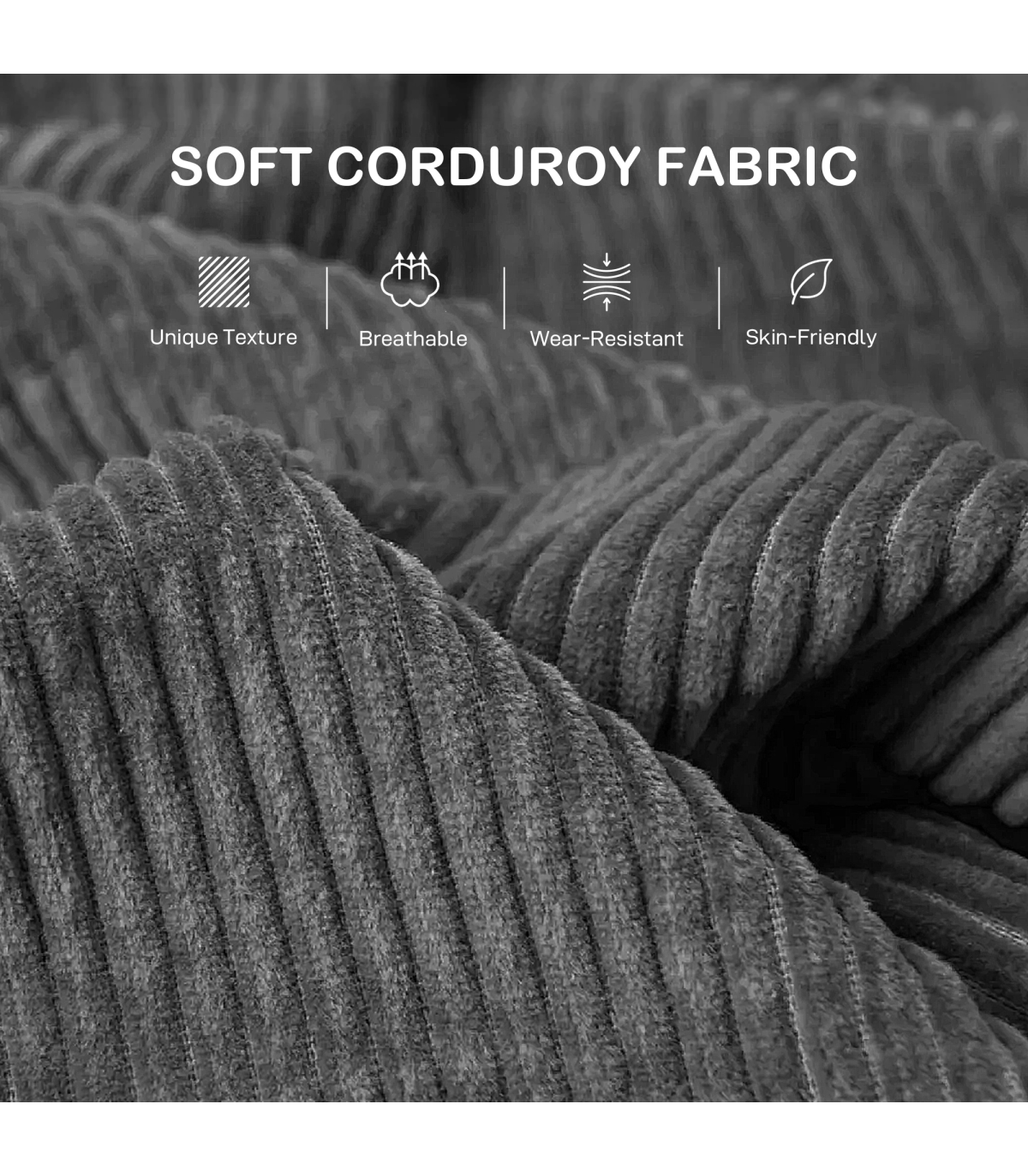 - Materials: Corduroy (100% Polyester), Steel, Plastic