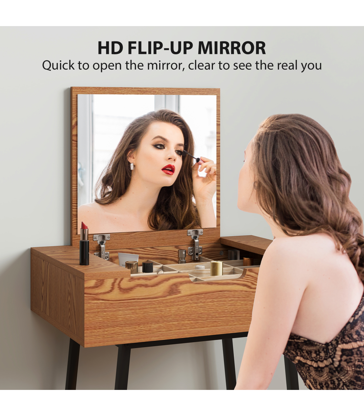 - HD flip-up mirror opens easily to provide a clear and sharp reflection