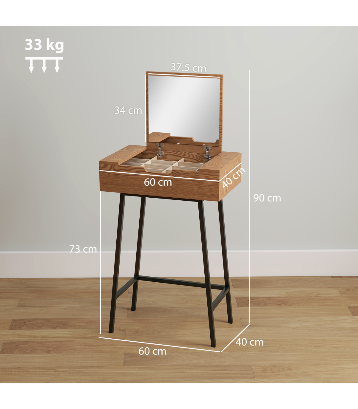 - Maximum Load: 3 kg (compartment), 30 kg (tabletop), 33 kg (overall)