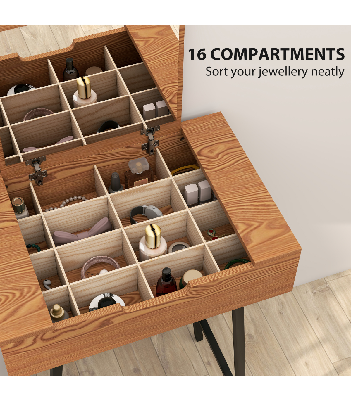 - 16 hidden compartments keep your makeup organised