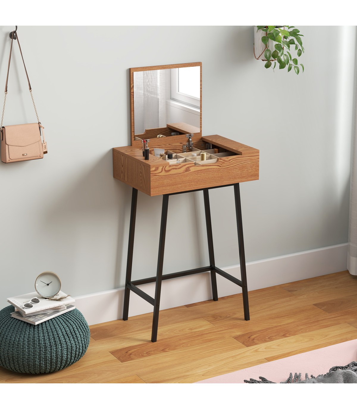 - Close the mirror to create a small computer desk