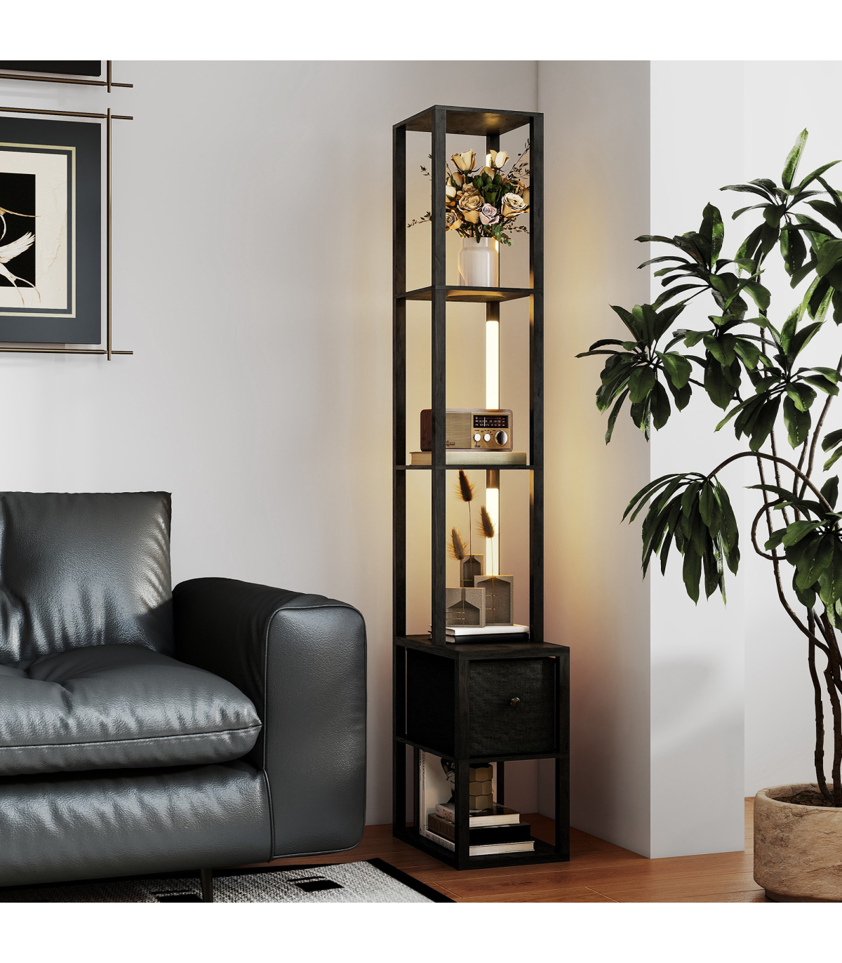- 3-in-1 floor lamp integrates lighting, storage and display