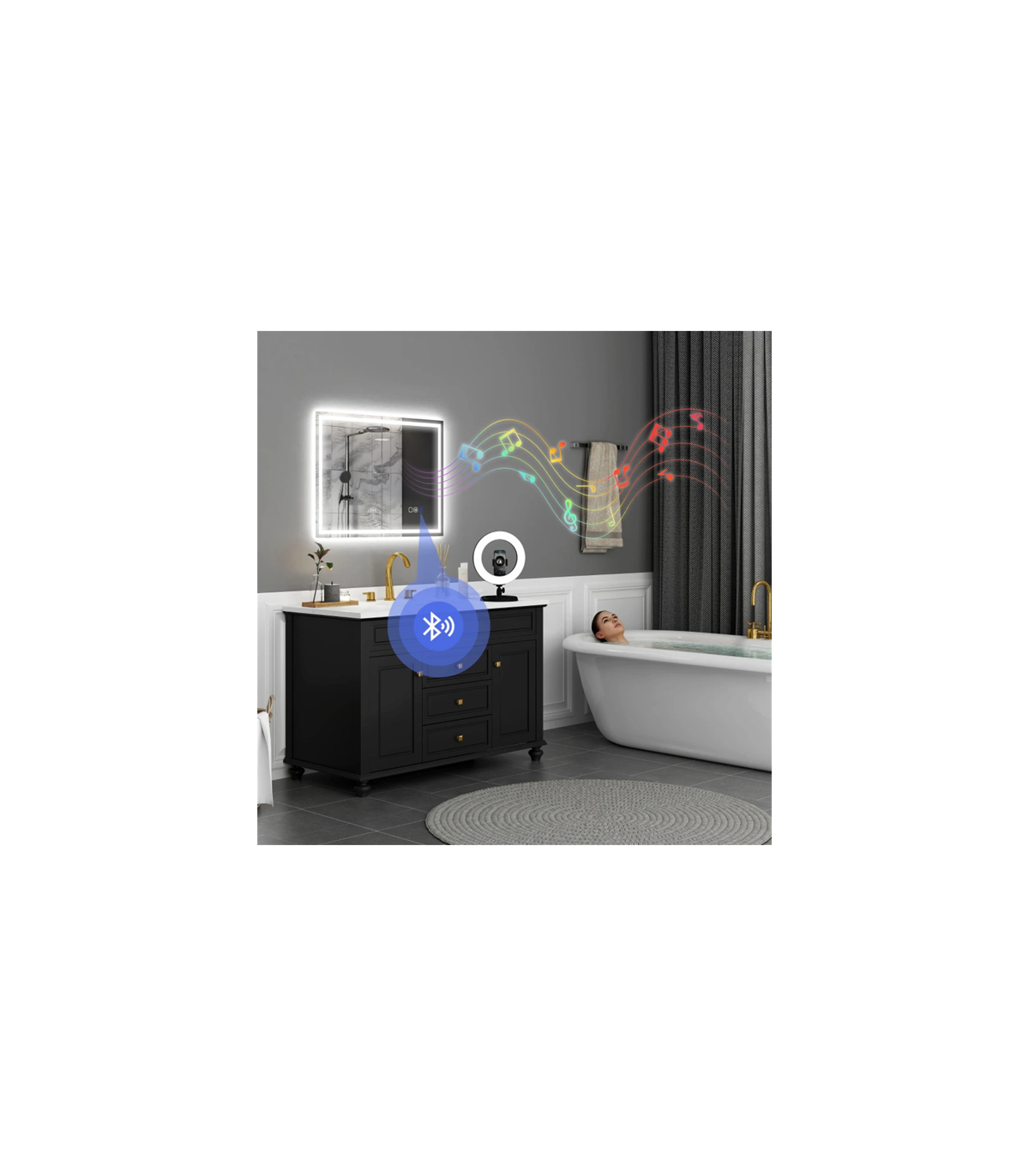 - Bluetooth speaker. Connect and listen to music when showering and getting ready