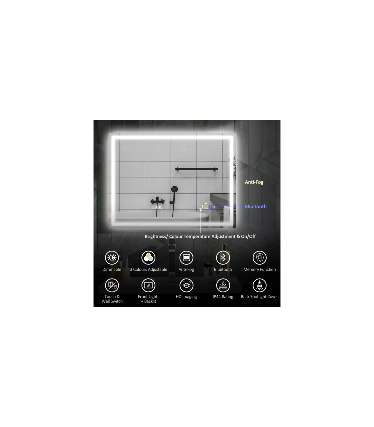 - IP44 rating makes mirror safe in steamy shower bathrooms