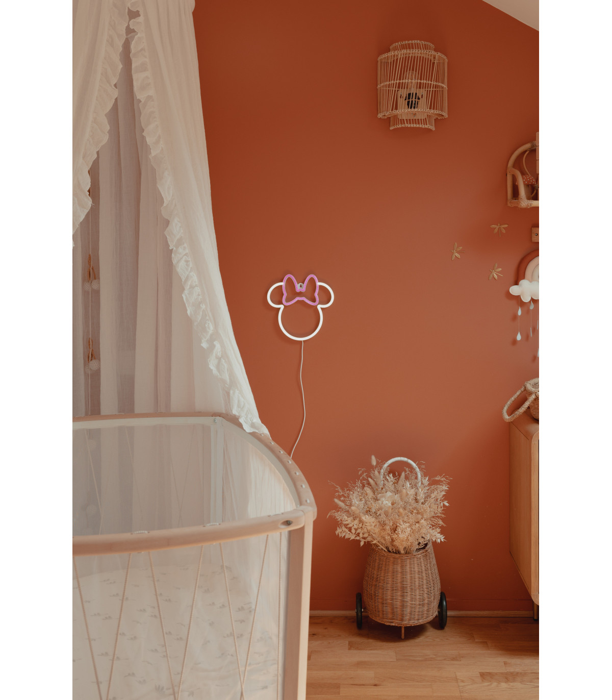 Celebrate 100 years of Disney magic with the officially licensed Minnie Mouse LED Neon Wall Light by Yellowpop. Designed in collaboration with Disney, this charming wall light captures Minnie’s full-body silhouette in glowing white neon, complete with a UV-printed backing that adds depth and dimension. Whether you're decorating a bedroom, playroom, or creative space, it brings a cosy, nostalgic glow that fans of all ages will love.