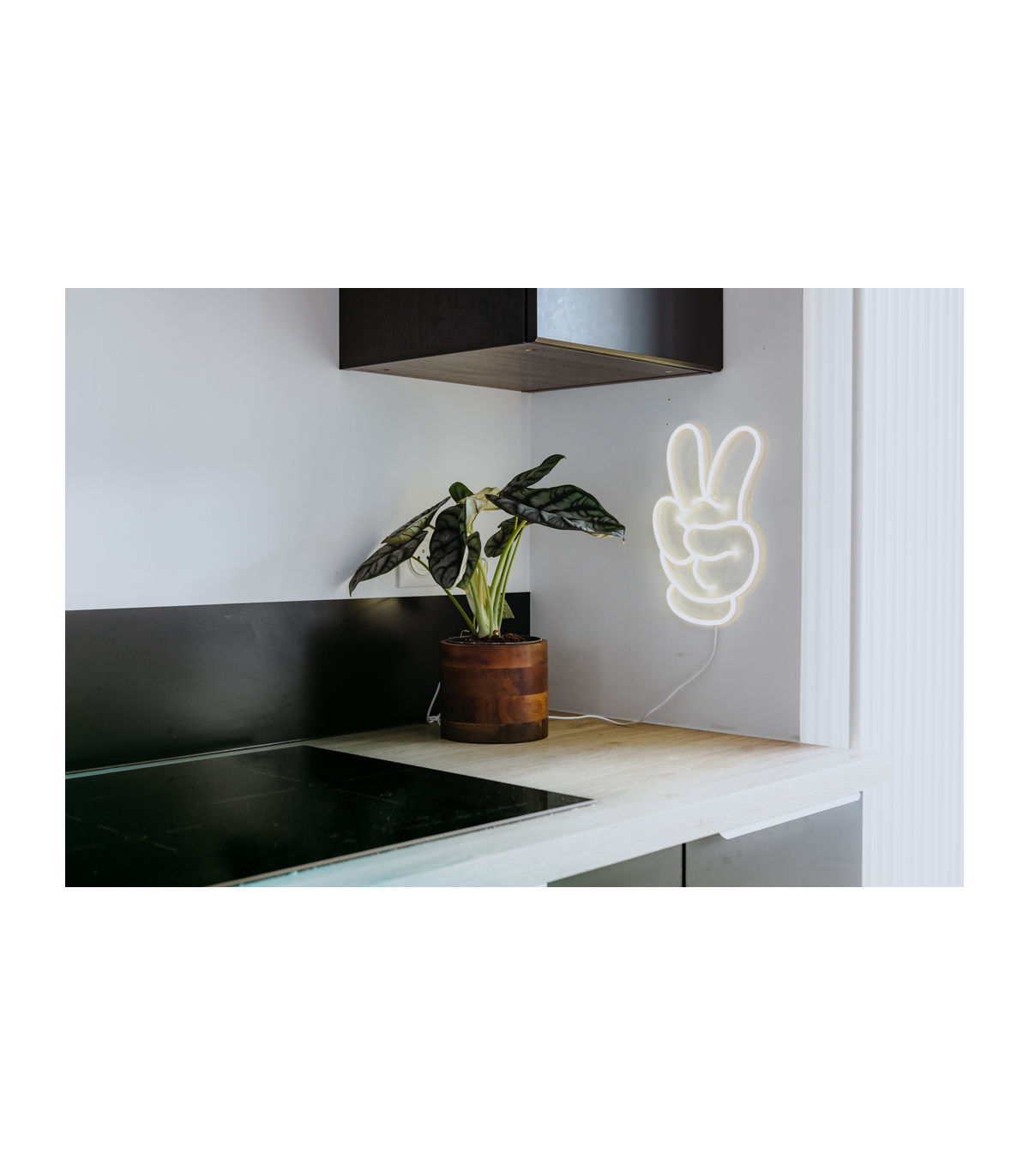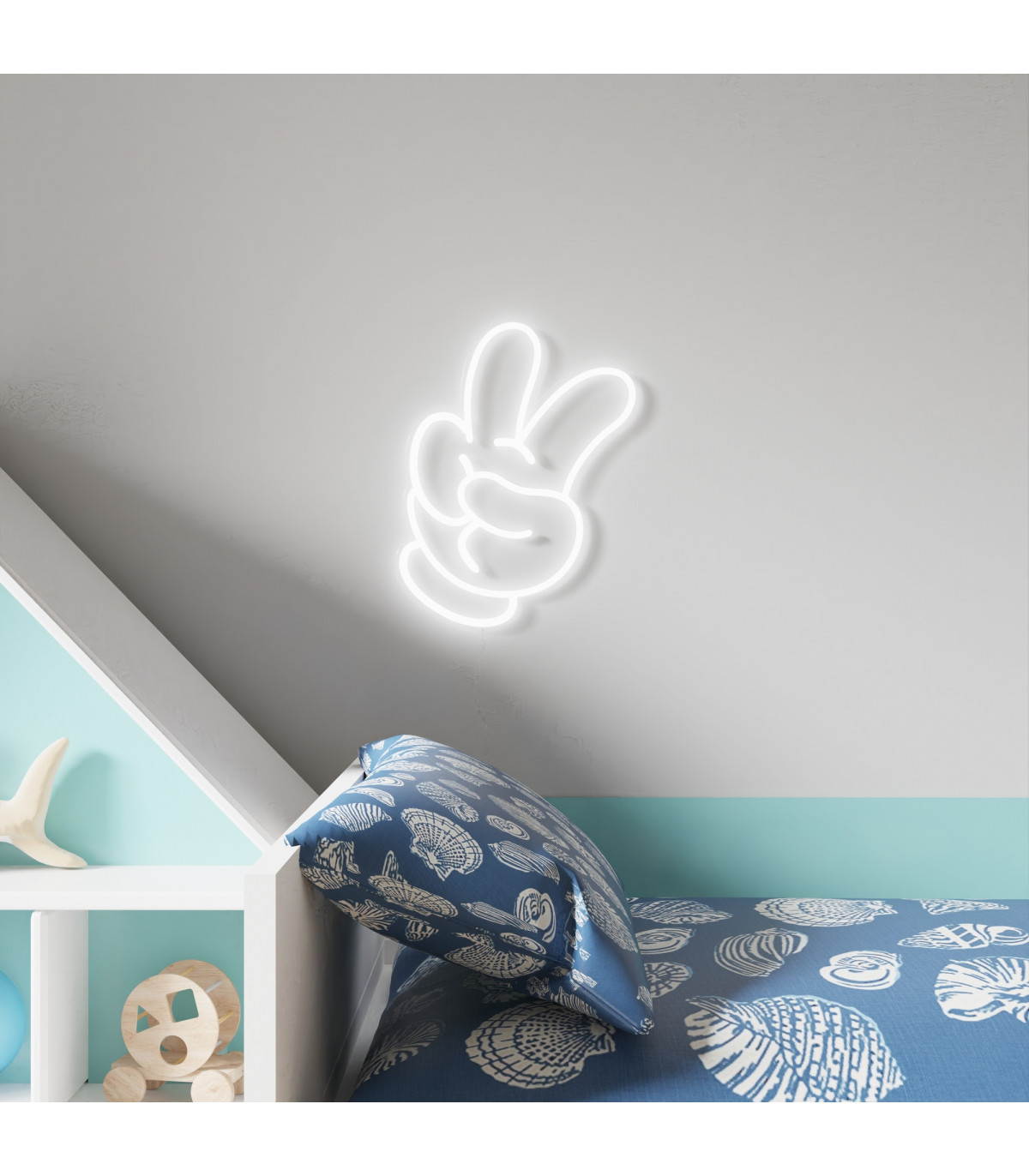 Introducing YellowPop's Disney Licensed Neon Signs - Mickey/Minnie Glove Peace Sign! Embrace peace and joy with the Mickey/Minnie Glove Peace Sign neon sign. This eye-catching design features Mickey or Minnie's glove in a peace sign position, exuding a vibrant and positive energy. Measuring 23.2cm x 30cm, it's the perfect size to command attention and create a focal point in any room. Whether you're adding a touch of Disney magic to your living space, enhancing a music or entertainment area, or celebrating the spirit of peace and harmony, this neon sign is the perfect choice. With its easy installation using the included 2-meter USB lead, you can effortlessly infuse your surroundings with the iconic Disney charm and the uplifting message of peace. Let the Mickey/Minnie Glove Peace Sign neon sign radiate positivity and inspire a sense of unity and tranquility in your home or workspace.