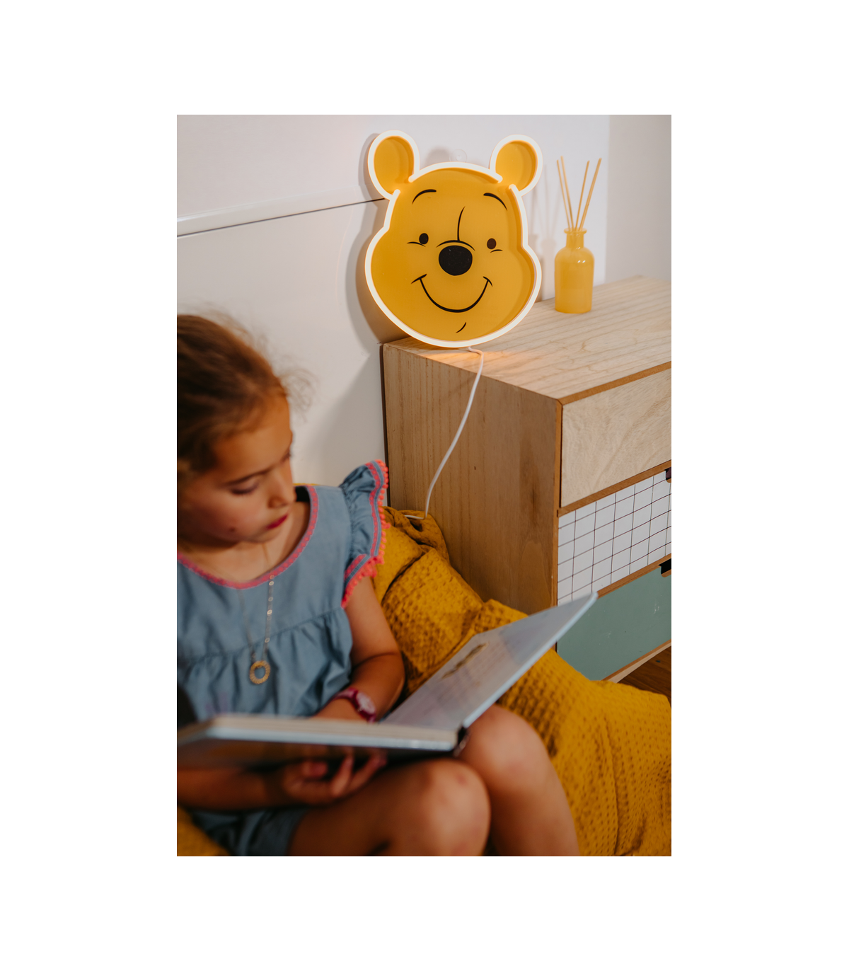 Introducing YellowPop's Disney Licensed Neon Signs - Winnie the Pooh Face! Bring the beloved characters of the Hundred Acre Wood into your home with the Winnie the Pooh Face neon sign. This enchanting neon sign showcases the adorable face of Winnie the Pooh, radiating a warm and inviting glow. Measuring 21.3cm x 25cm, it's the perfect size to add a touch of Winnie the Pooh's charm to any room. Whether you're creating a whimsical nursery, adding a touch of nostalgia to a living space, or celebrating the timeless wisdom of Winnie the Pooh, this neon sign is the perfect choice. With its easy installation using the included 2-meter USB lead, you can effortlessly brighten up your surroundings and let Winnie the Pooh's lovable spirit fill your home. Let the Winnie the Pooh Face neon sign be a reminder of the joy, friendship, and wisdom that Winnie the Pooh brings to our live