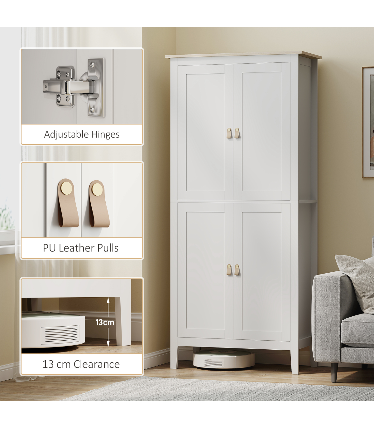 - 13 cm clearance allows robot vacuums to clean underneath
