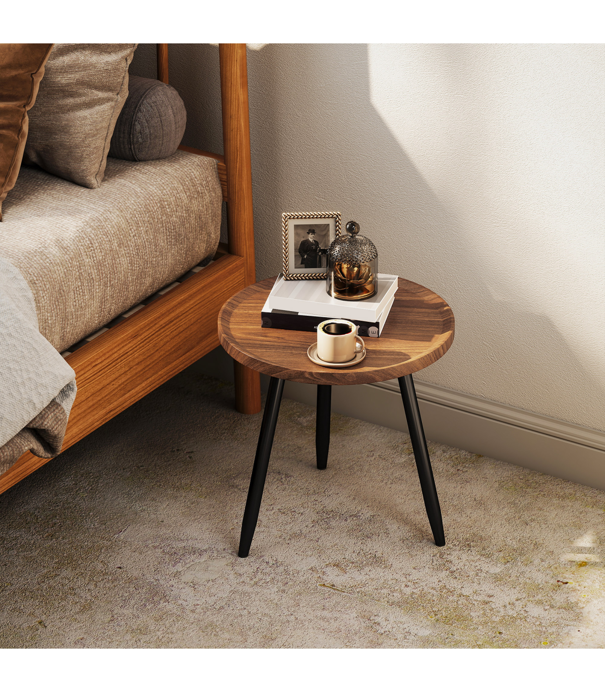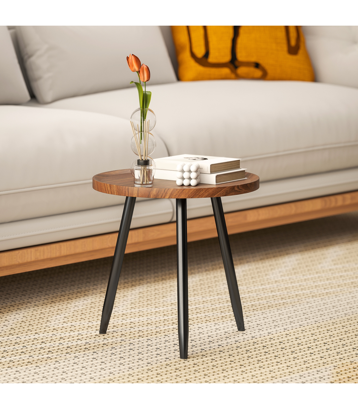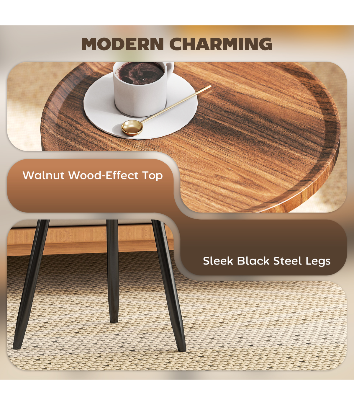 - Walnut wood-effect top adds warmth and style to rooms