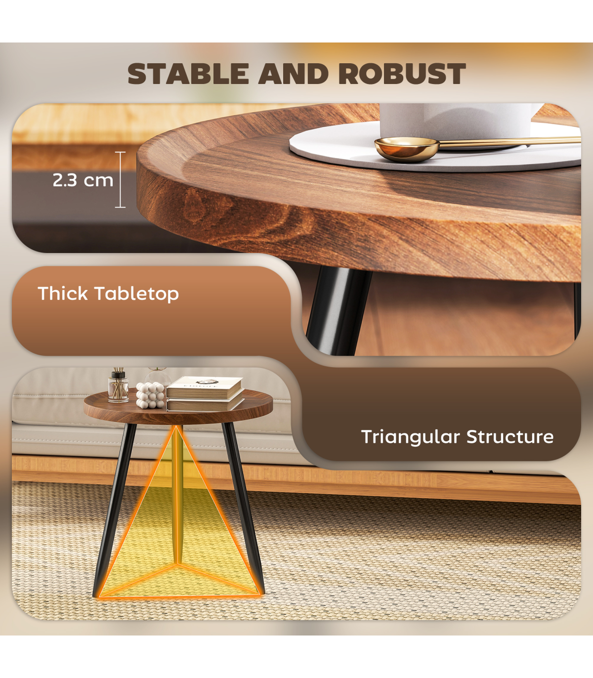 - Tabletop Thickness: 2.3 cm