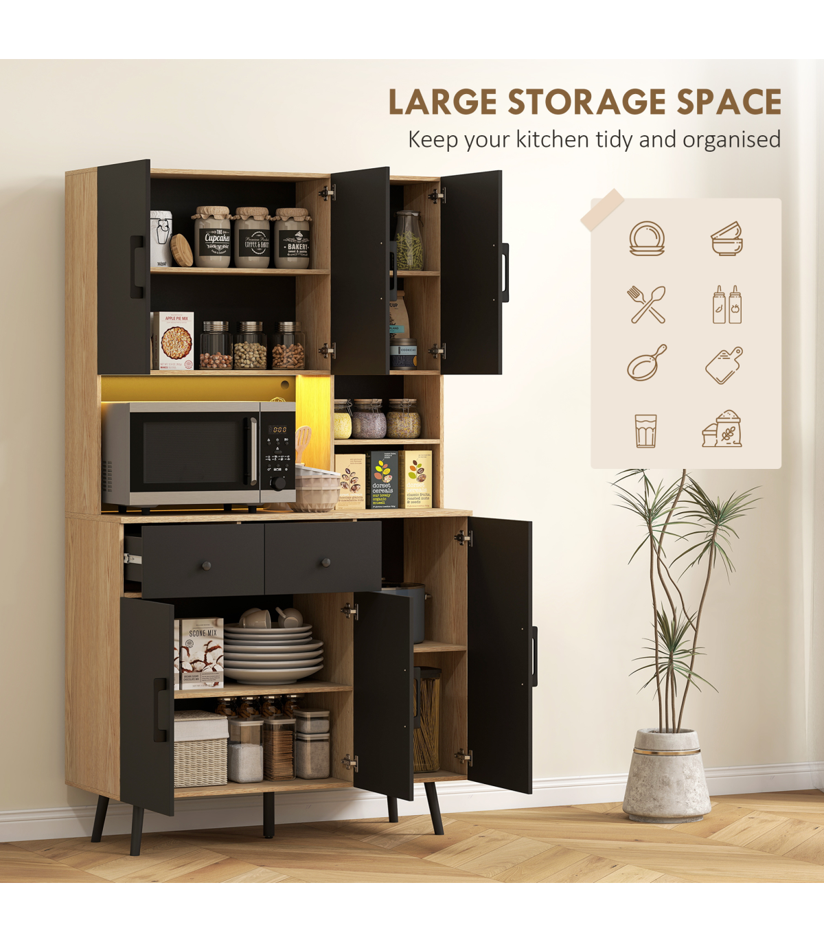 - Four cupboards, two drawers, spacious countertop and open shelves offer large storage space