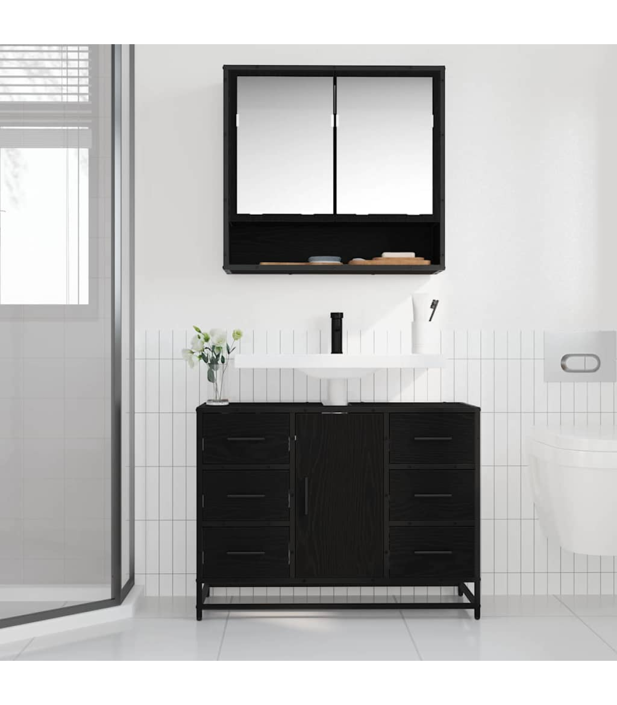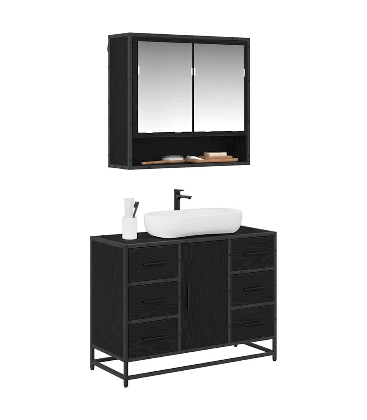 This Rustic Bathroom Furniture Set blends practicality with charming rustic style, adding a lovely touch to any bathroom. With its textured finish and calming earthy tones, it’s perfect for creating a warm and inviting atmosphere. Imagine how well this set fits into a snug bathroom, making it a nice place to chill out with its natural look. Materials: Made entirely from engineered wood, this set is tough and has a lovely natural touch, great for fans of rustic designs. The material choice gives it a strong build while looking sleek enough to handle a bathroom's needs. Included Components: The set comes with a bathroom sink cabinet and a mirror cabinet, both featuring built-in shelves for smart organisation. This helps keep your bathroom neat and tidy while the mirror adds a touch of style and practicality. Features / Function / Design: Being wall-mounted frees up floor space, making the room feel light and airy. Its easy-to-open hinged doors and traditional drawers make it a breeze to grab what you need, perfect for your daily bathroom routine. Recommended Uses: This furniture set is a great fit for bathrooms of any size, ideal for folks looking for both style and storage. It works well in small powder rooms and larger bathrooms, catering to different storage needs while keeping that rustic elegance. Care & Maintenance: To keep this set looking its best, just wipe it down with a dry cloth to get rid of dust and moisture. Follow the assembly instructions from the manufacturer for the best stability and lifespan.