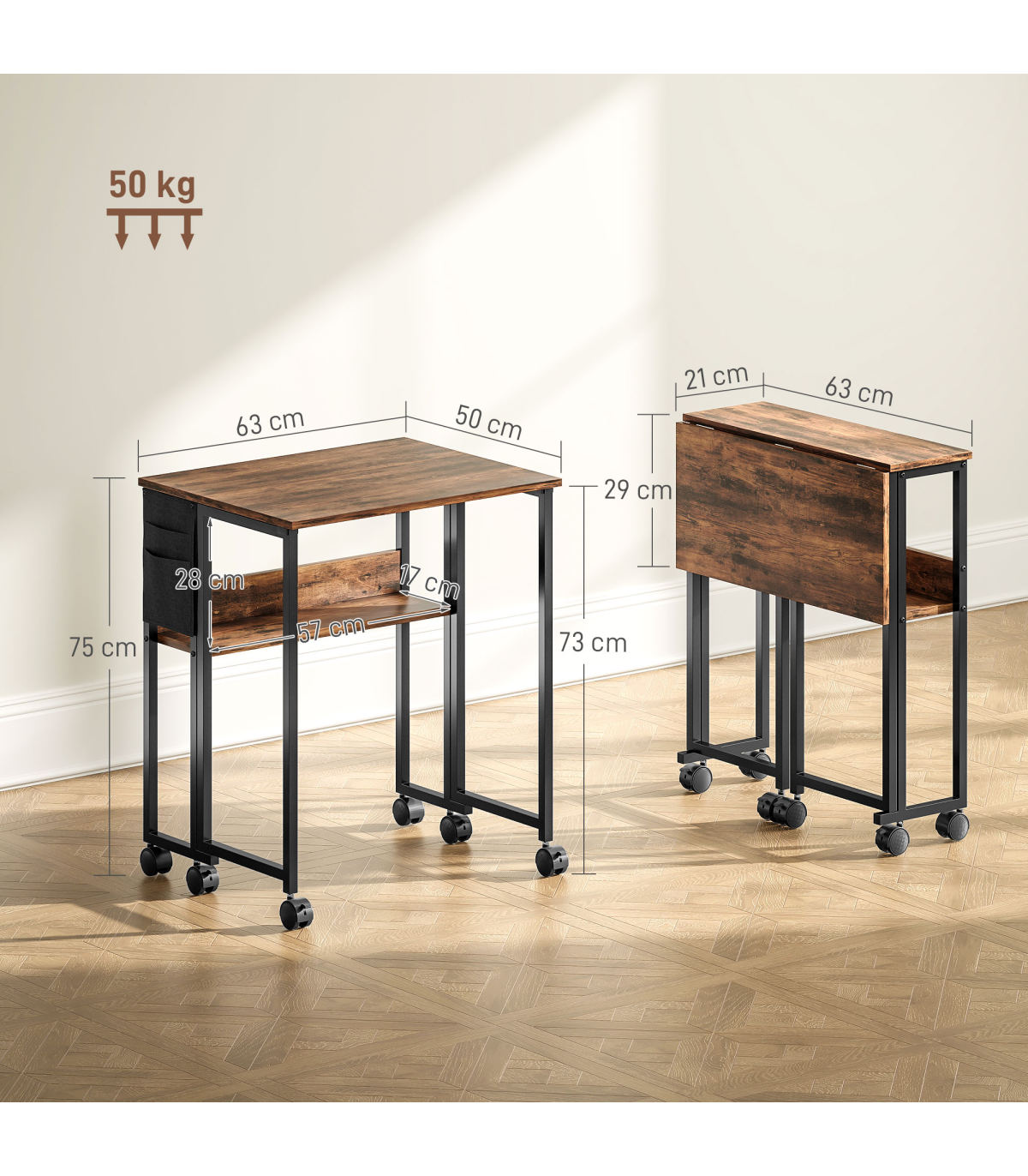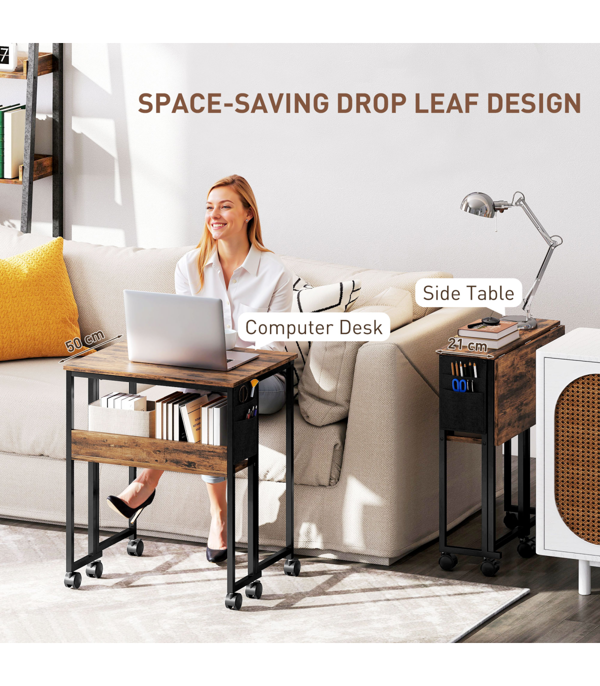 - Drop leaf design. From 21 cm to 50 cm. Plenty of working space