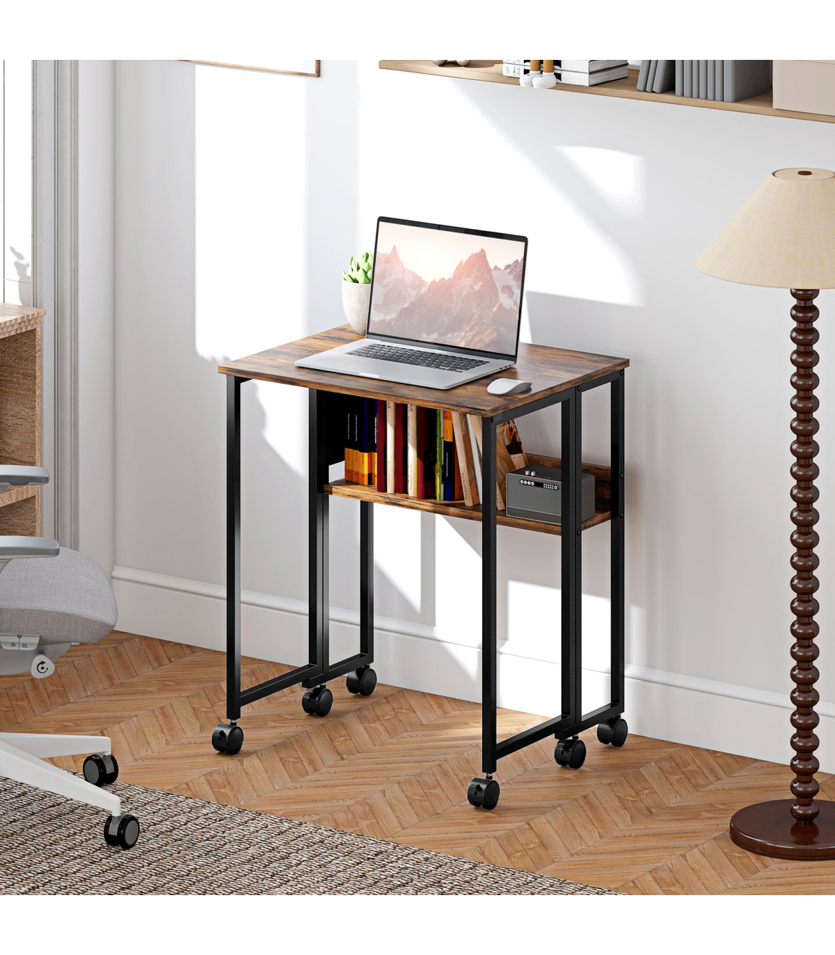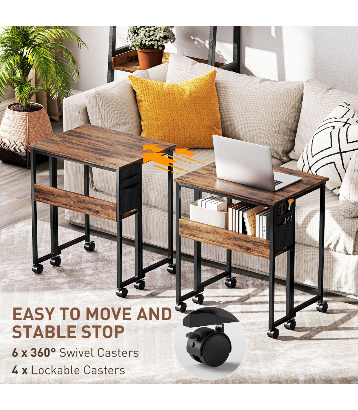 - Six 360° swivel wheels to move around easily, with brakes so it stands in place
