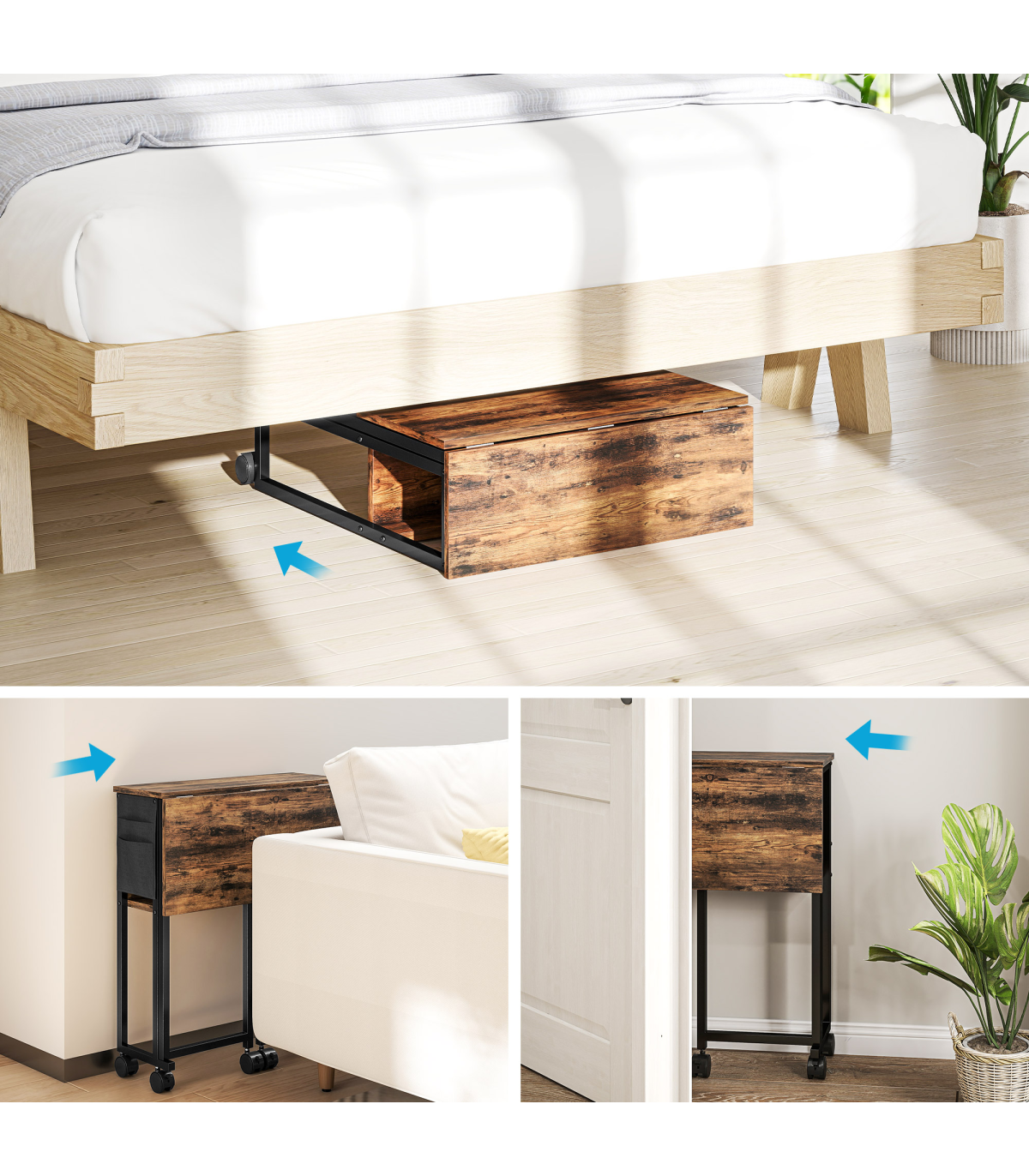 - Can be used as a side table to fit narrow spaces when folded