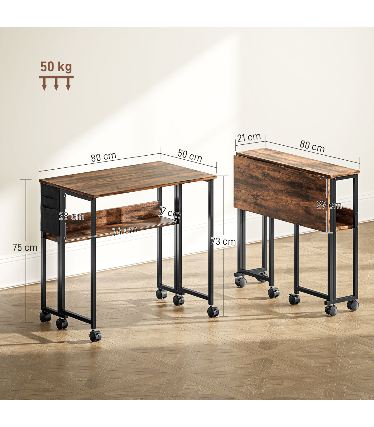 - Drop leaf design. From 21 cm to 50 cm. Plenty of working space