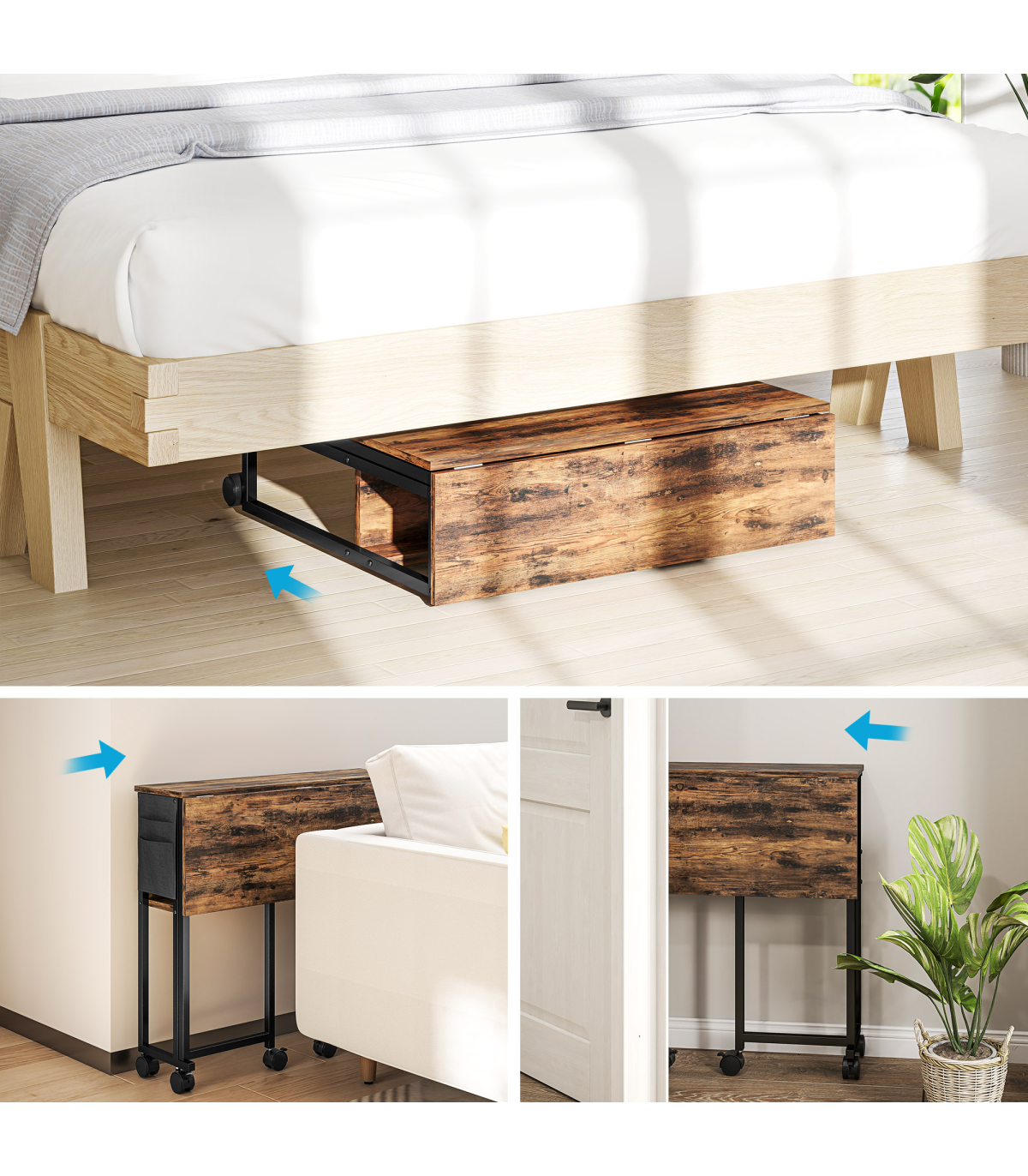 - Can be used as a side table to fit narrow spaces when folded