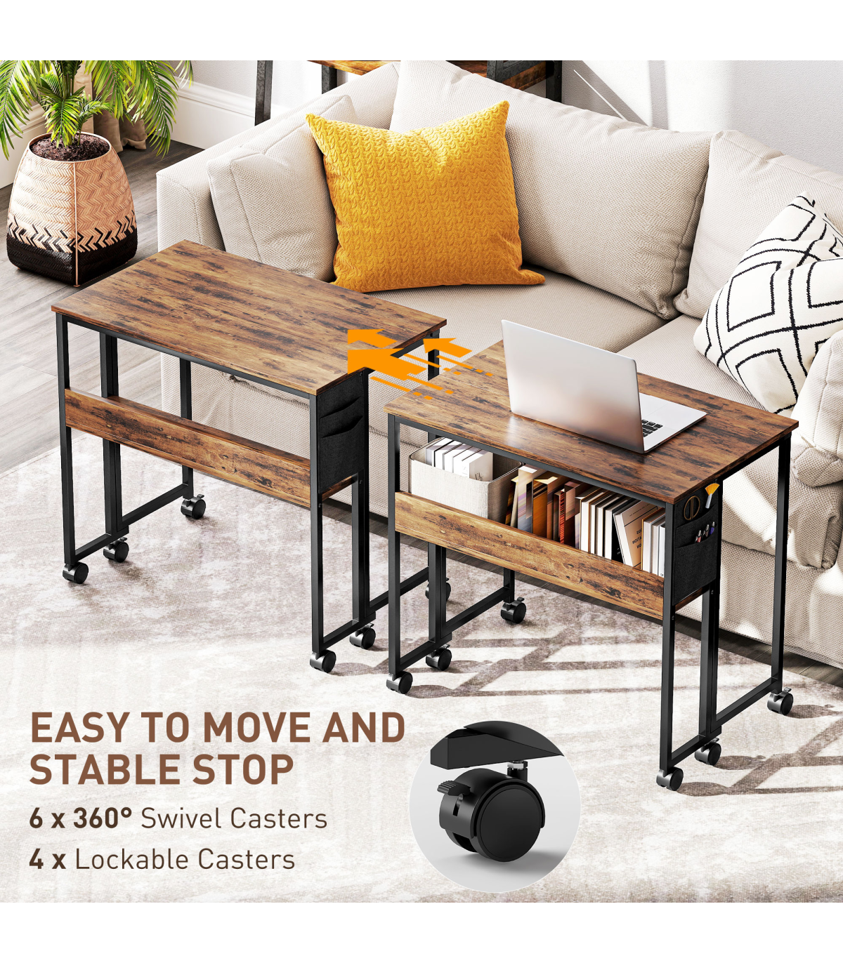 - Six 360° swivel wheels to move around easily, with brakes so it stands in place