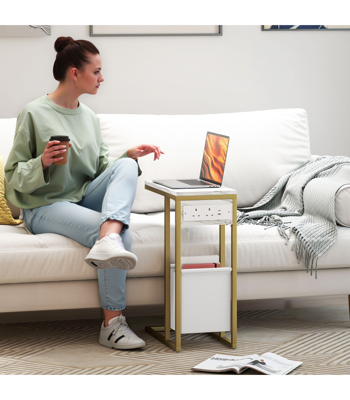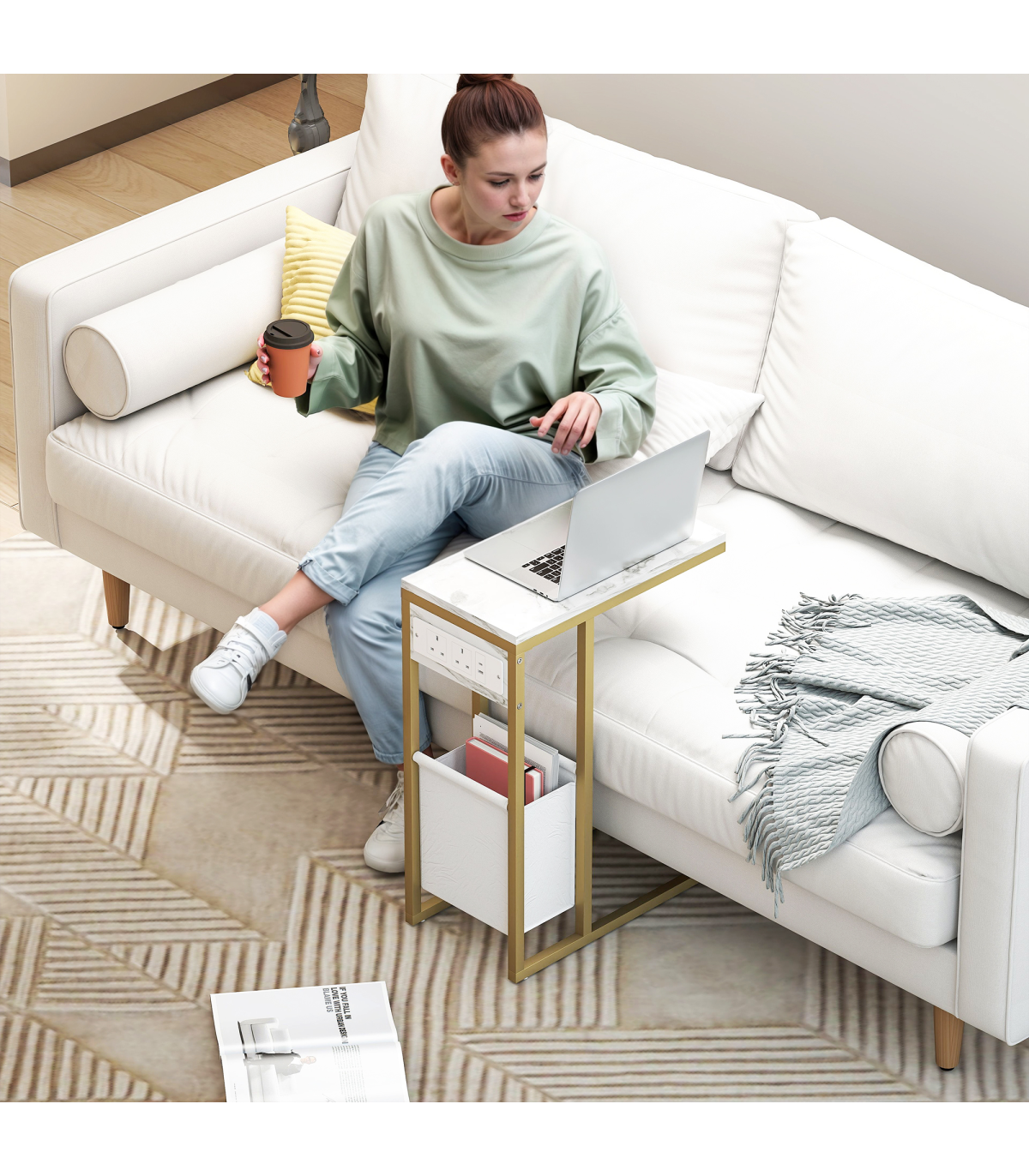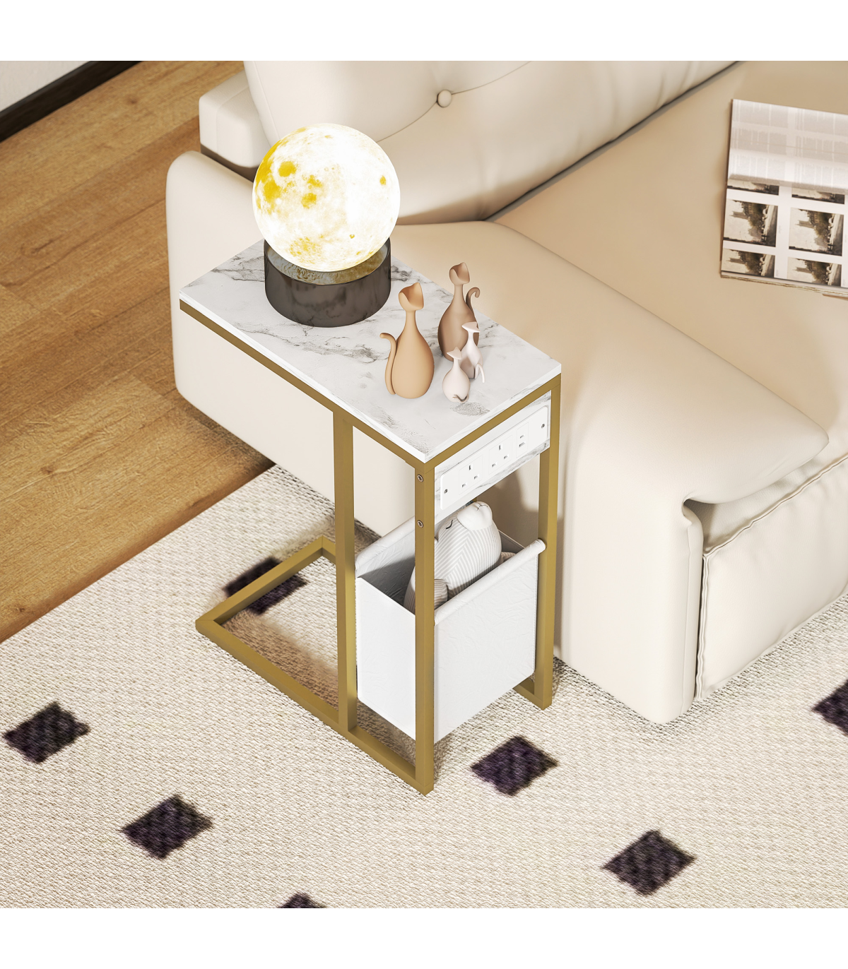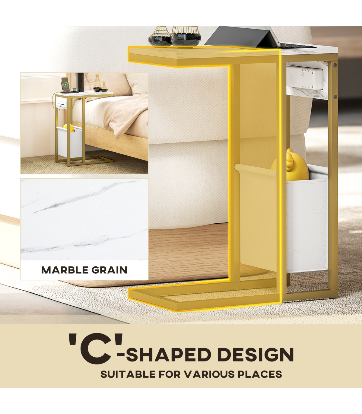- C shaped design with faux marble and gold-tone steel for a luxurious touch