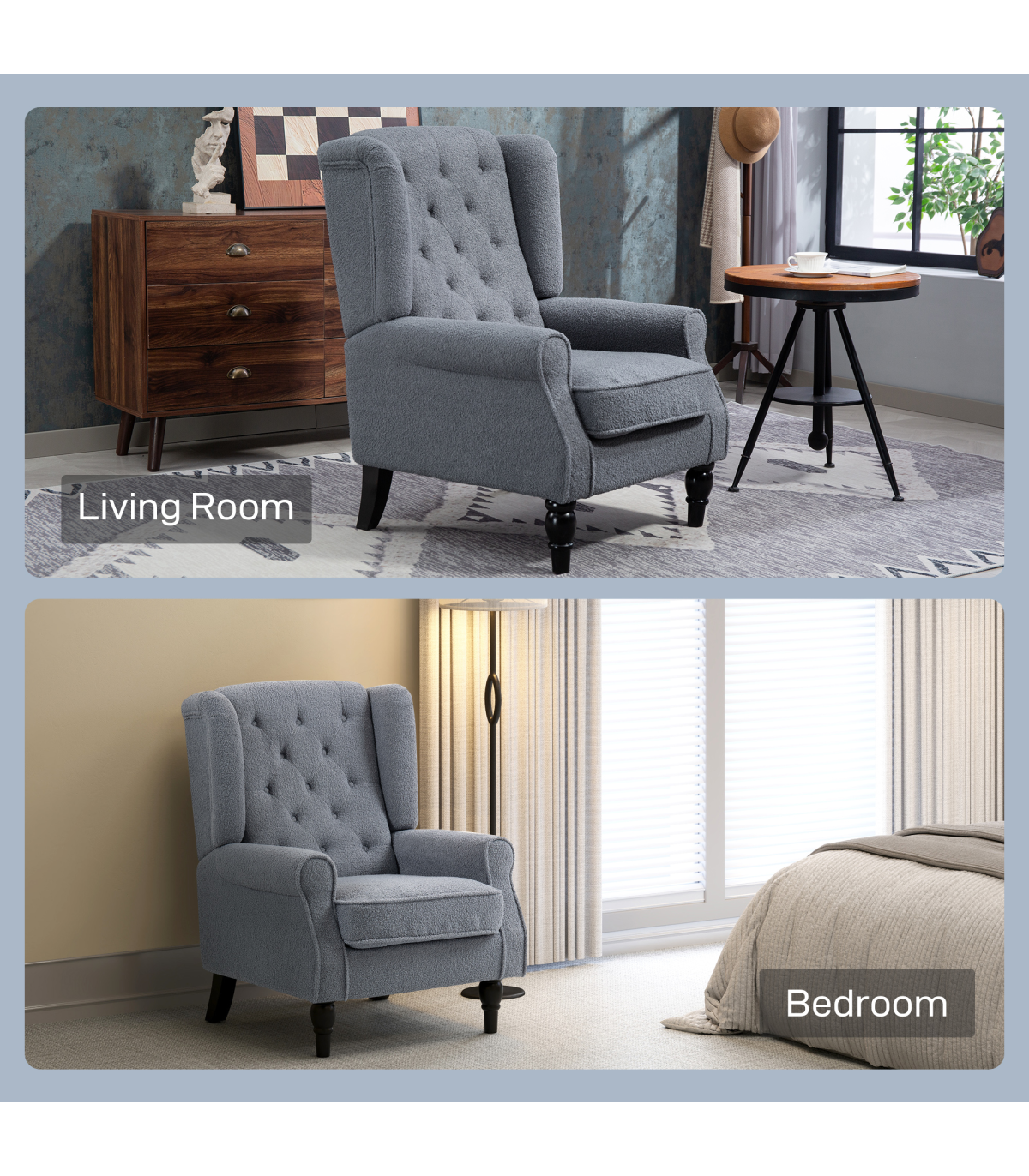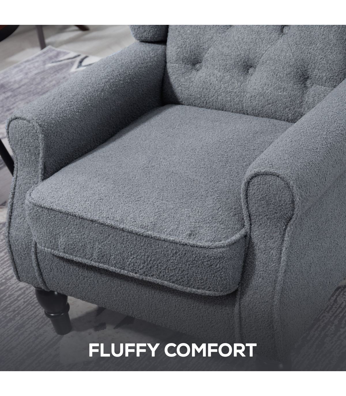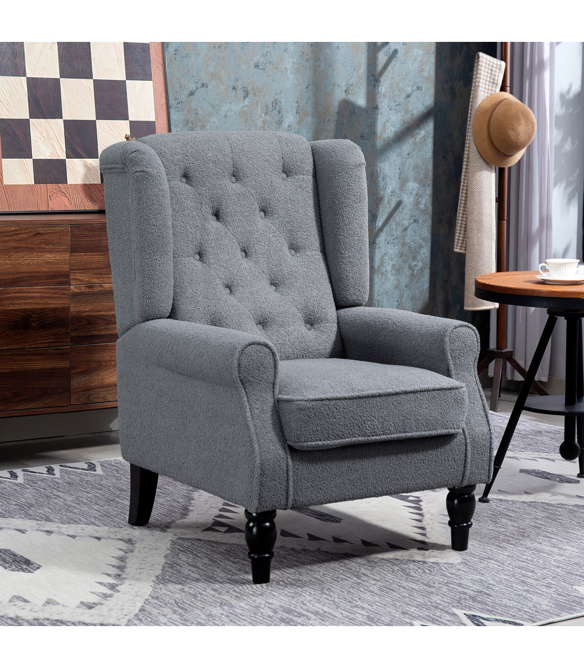 - Retro armchair featuring deep tufting on the high-rise back and piping on the arms – a timeless look which will never go out of style