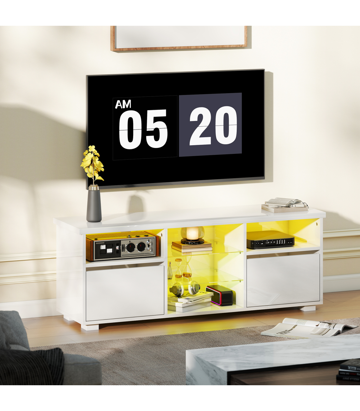 - Two cupboards, open shelves and adjustable glass shelves, keeps living room organised