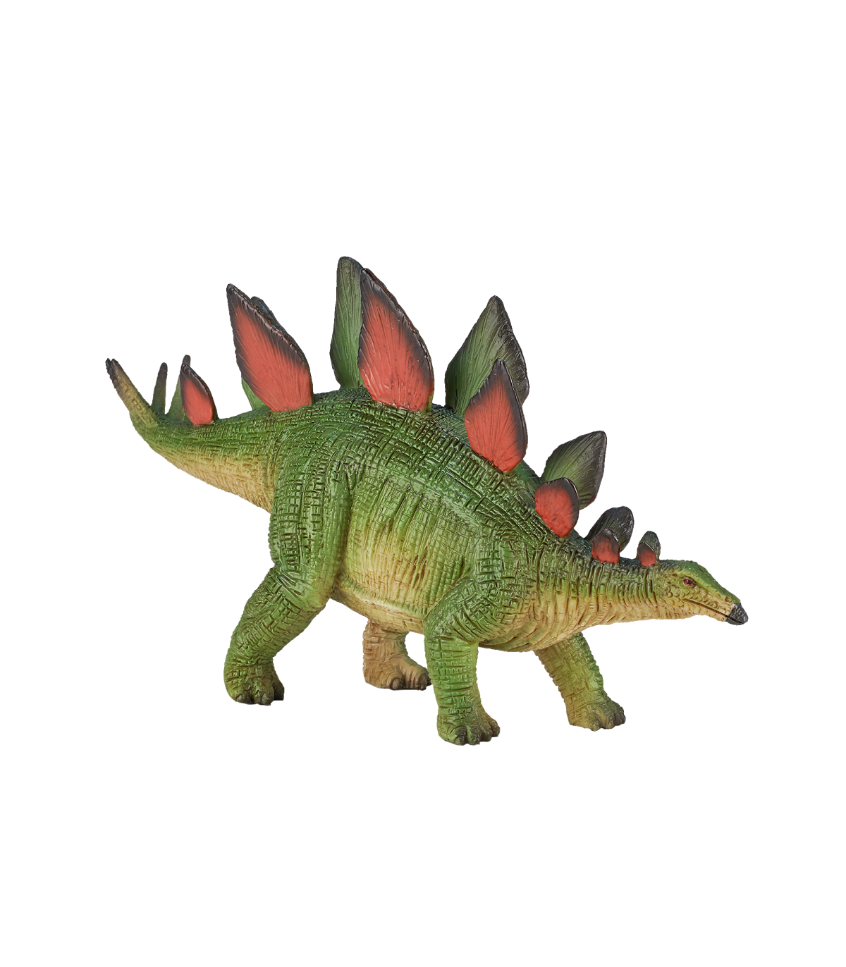 The Stegosaurus is the most famous dinosaur from a group of dinosaurs known as Stegosauria. They were all herbivores (plant eaters) and featured rows of unique bones that developed into plates and spines along their back and tail.