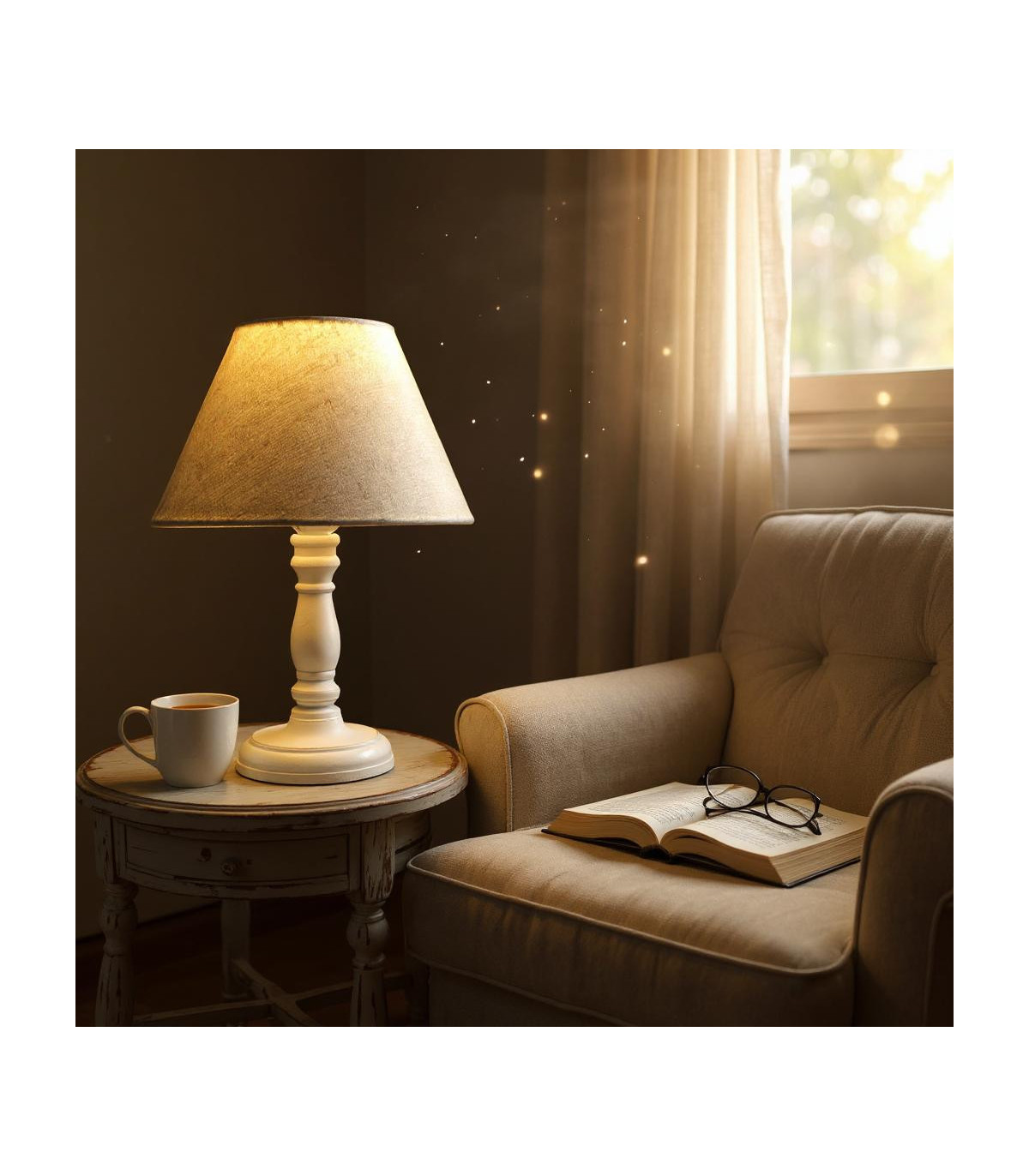 A traditional design table lamp base and shade. The lamp is individually switched by an inline rocker switch and is double insulated to allow for safe use without need of an earth wire. Great for lighting in any setting and ideal in a living room or bedroom., In Line switchLinen shade