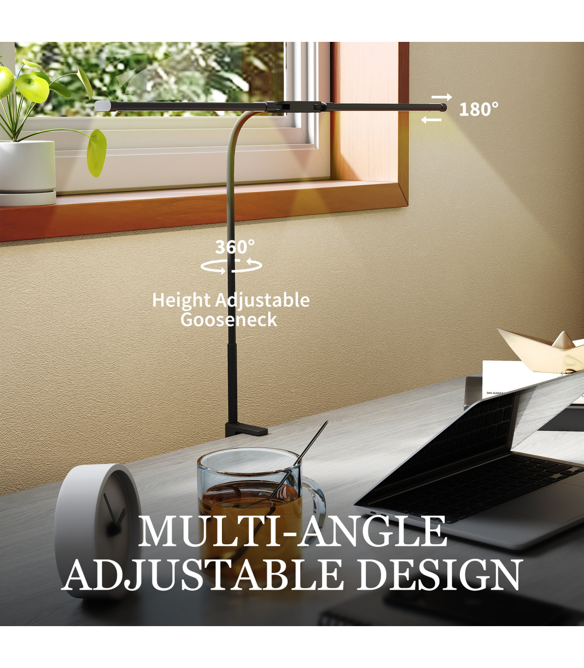 - Gooseneck adjusts height and rotates 360° for optimal positioning
