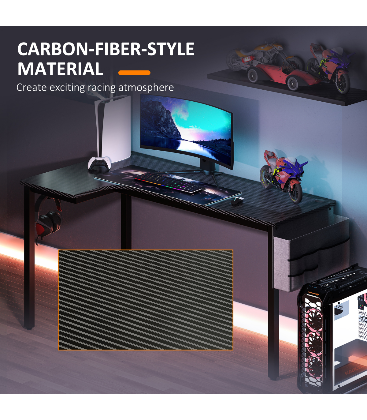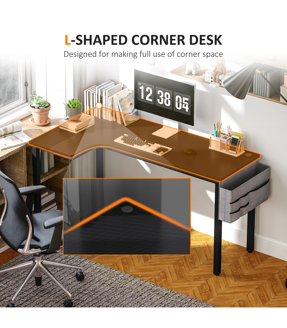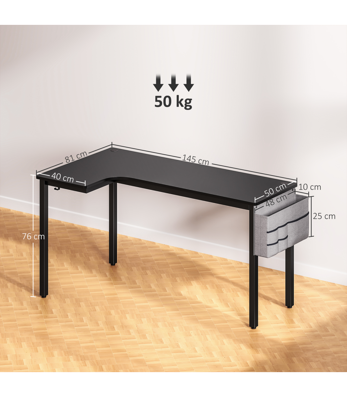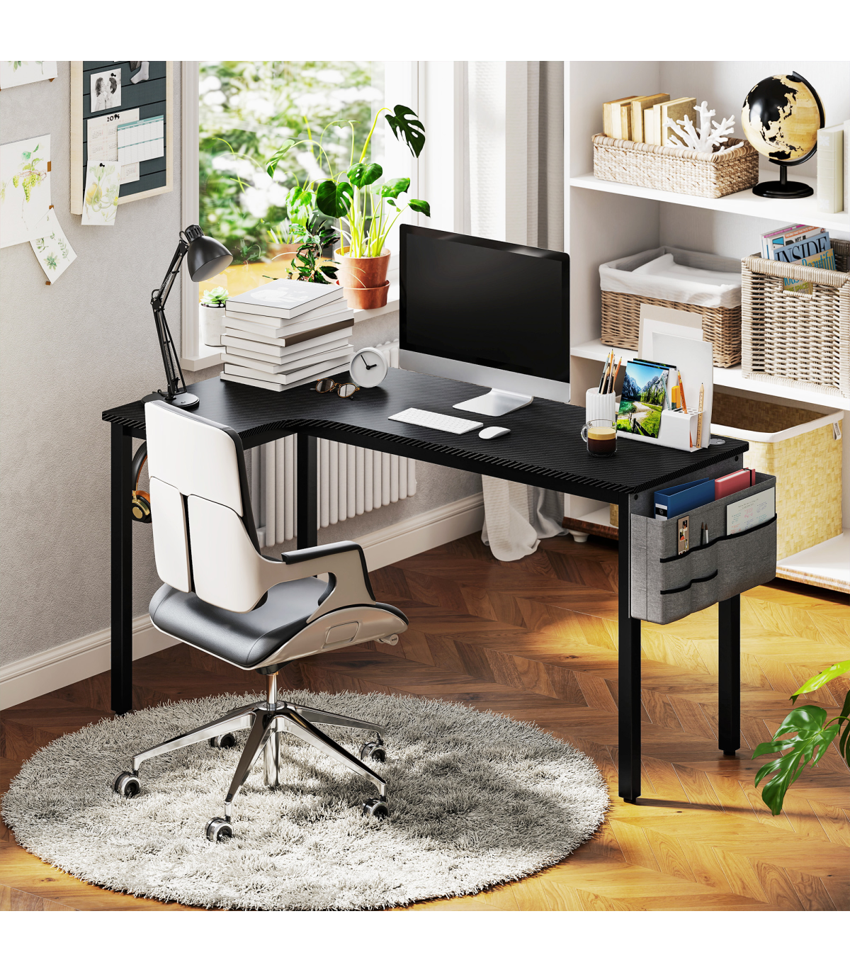 - "L" shape: makes better use of spaces, the side table offers more working space than traditional straight desks. Great for corner spaces