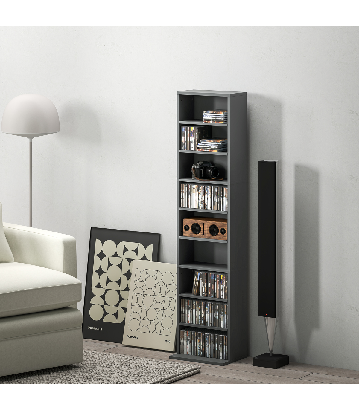 - Holds up to 260 CDs/120 DVDs. Or use for books, other media or decorations