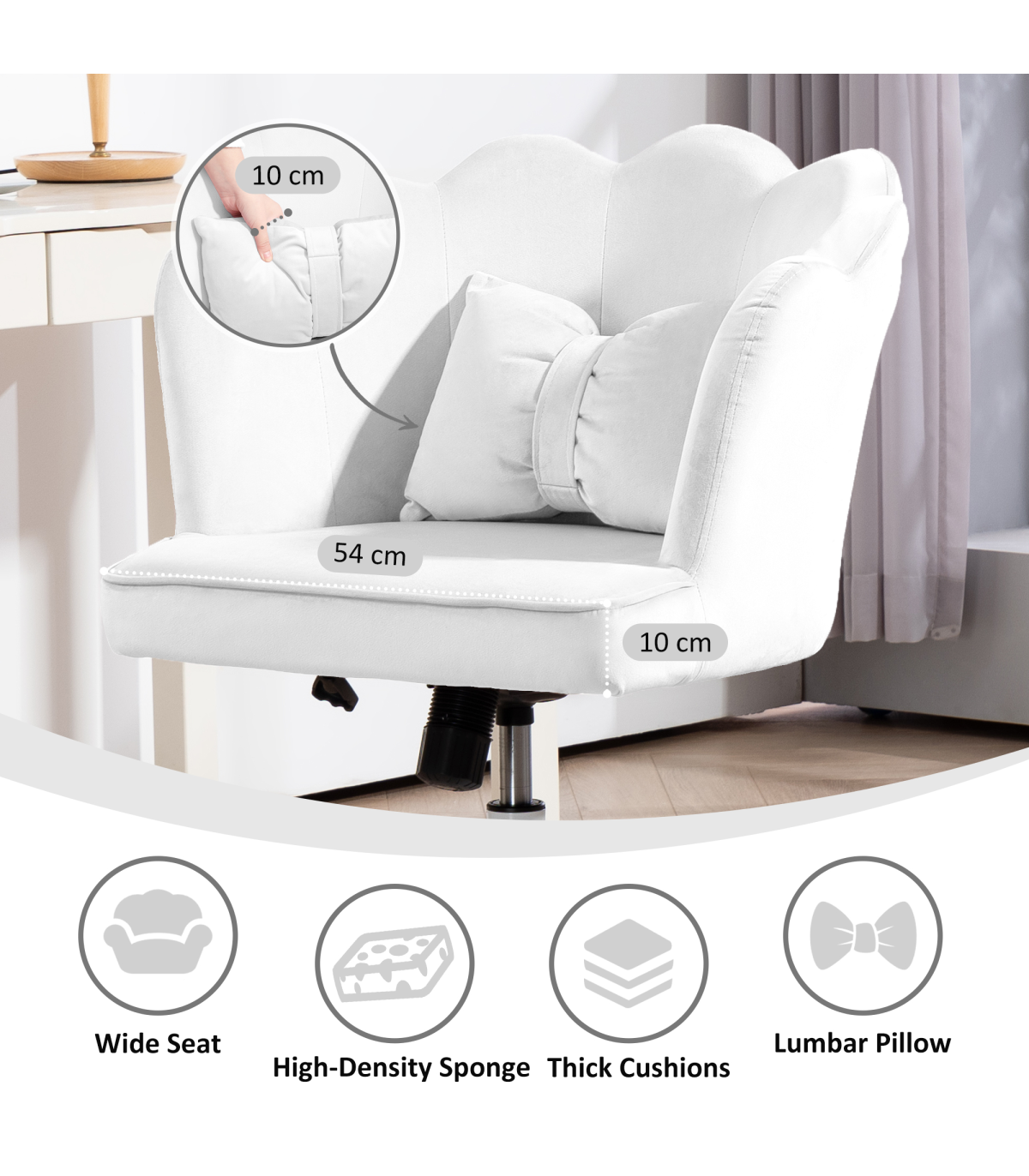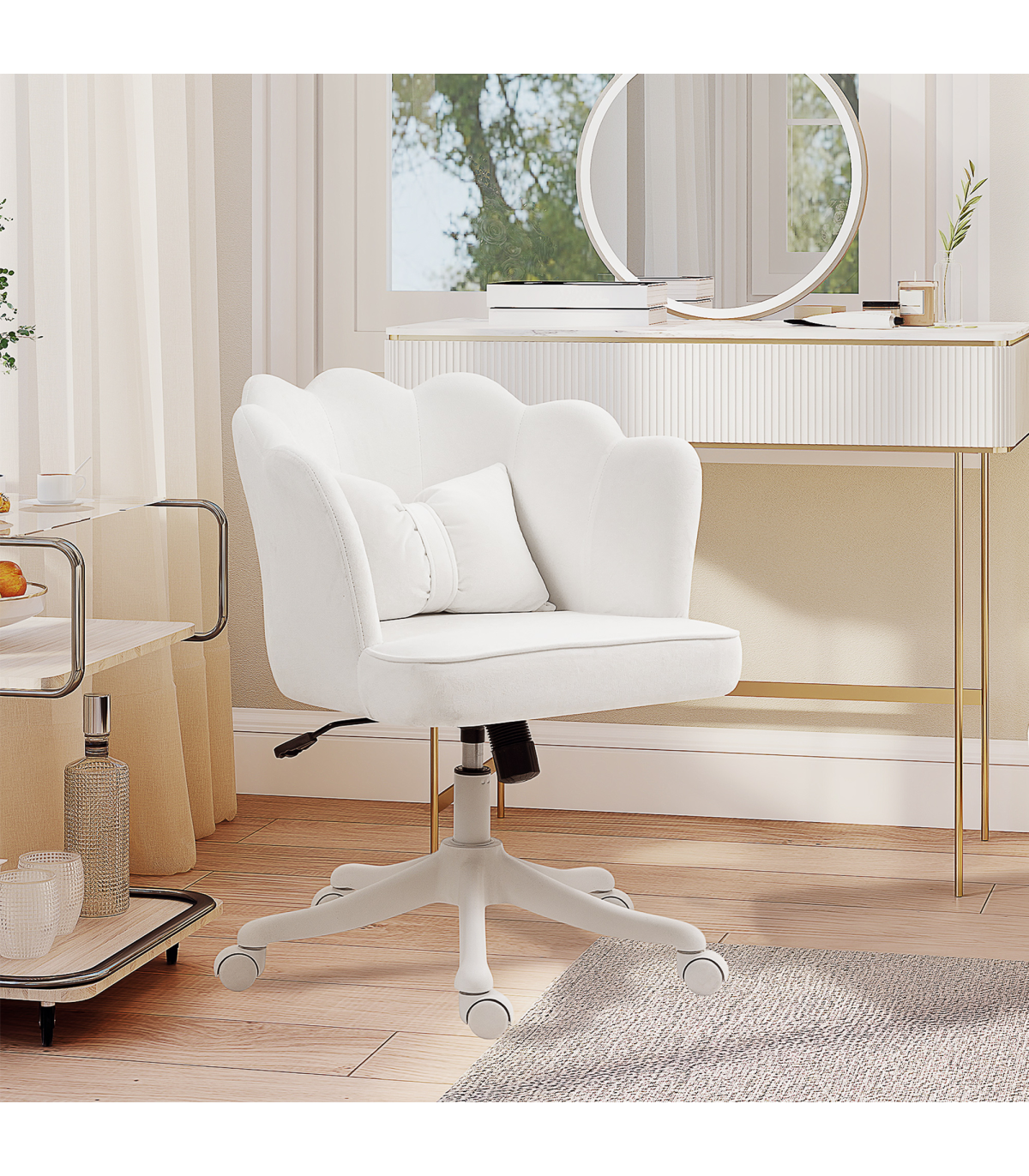 - Petal scallop shell back and velvet-feel upholstery for an elegant look