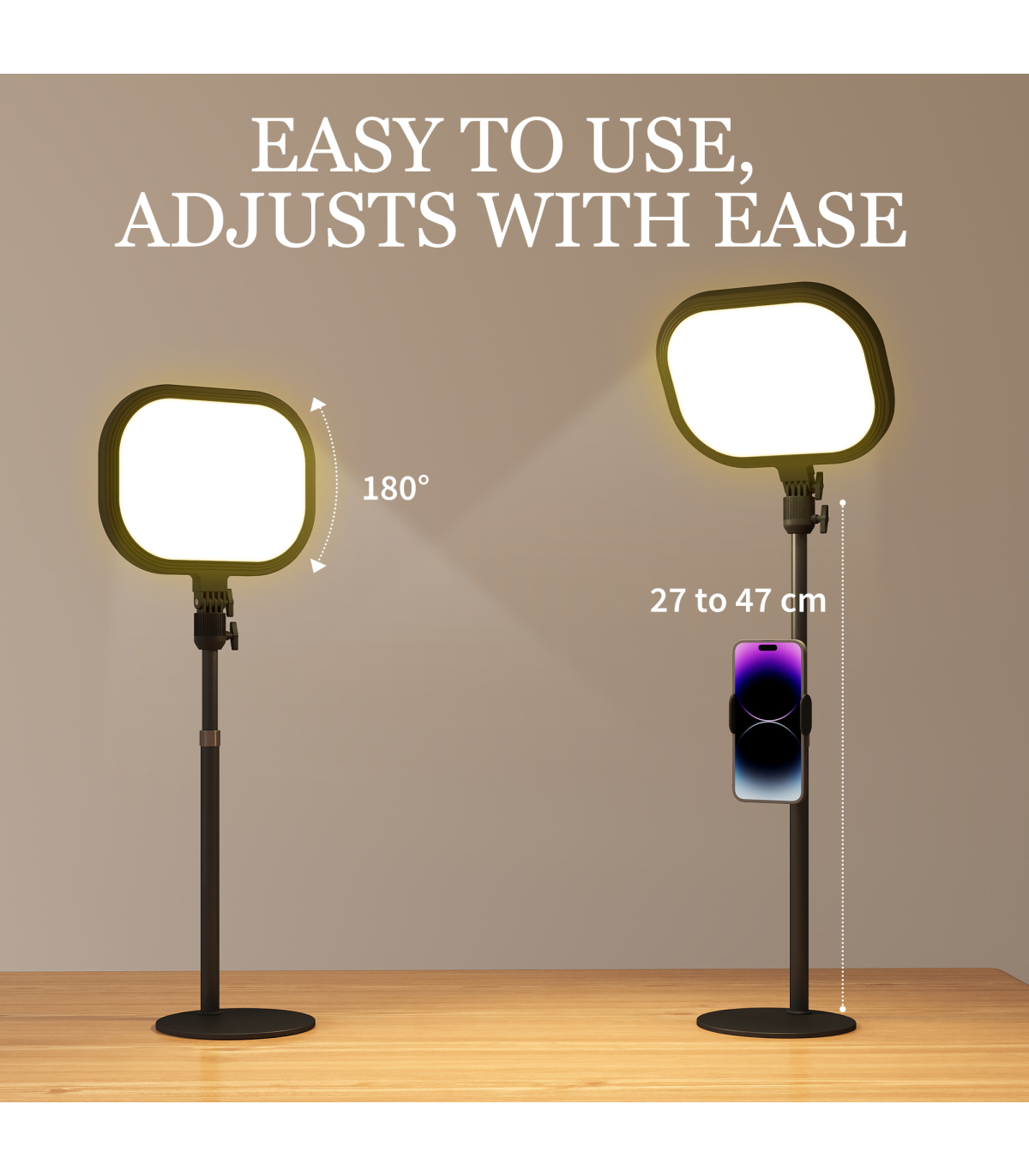 - Desk light with lamp head tilting 180° and adjustable pole height from 27-47cm