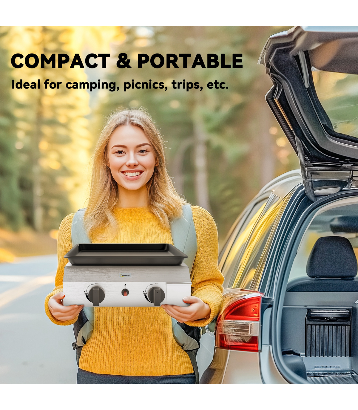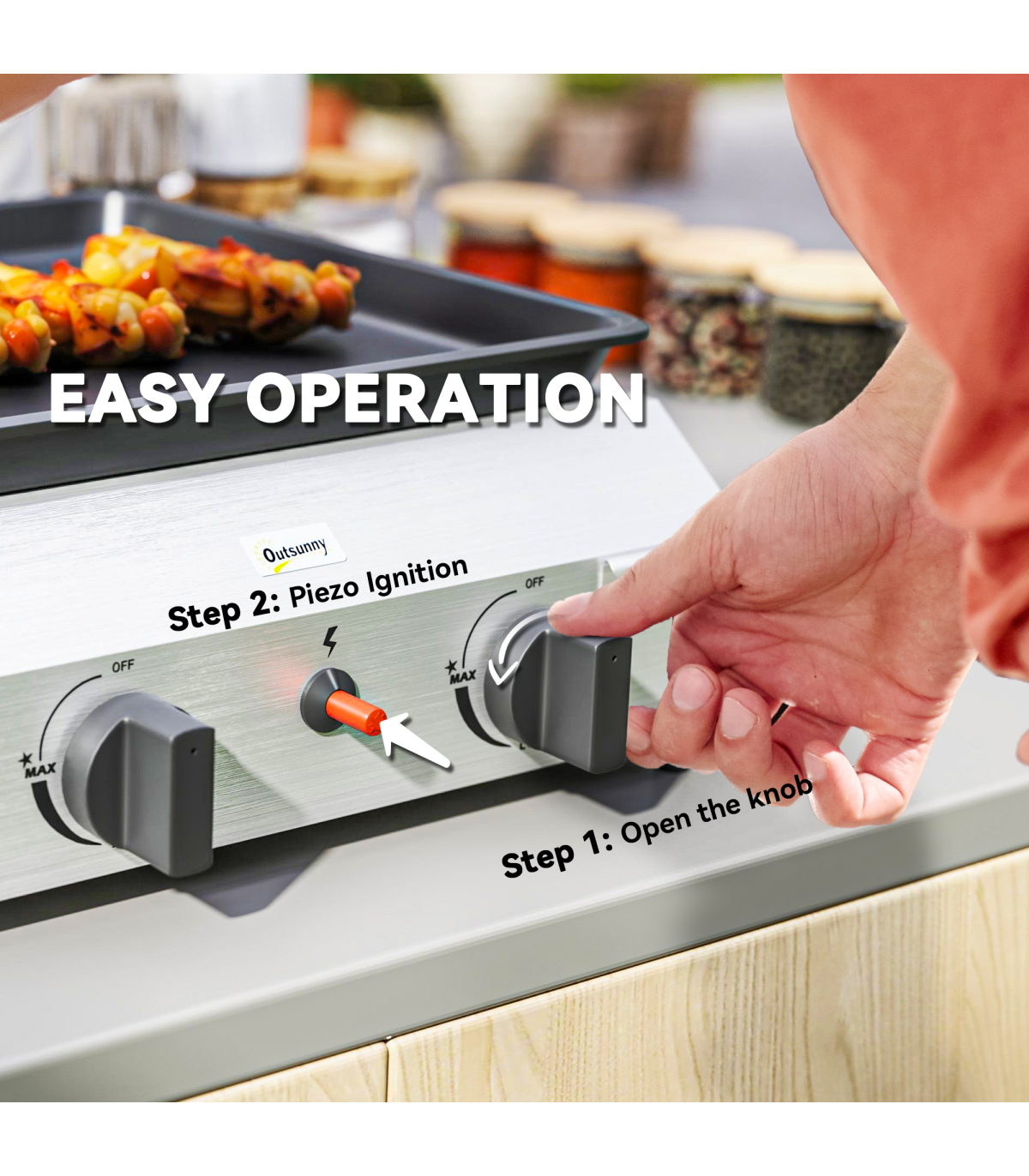 - Two 2.4kW gas burners, easily controlled by piezo ignition