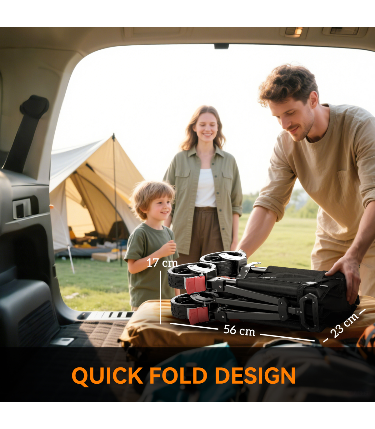 - 360° rotating wheels for smooth manoeuvrability, brakes on two wheels ensure stability