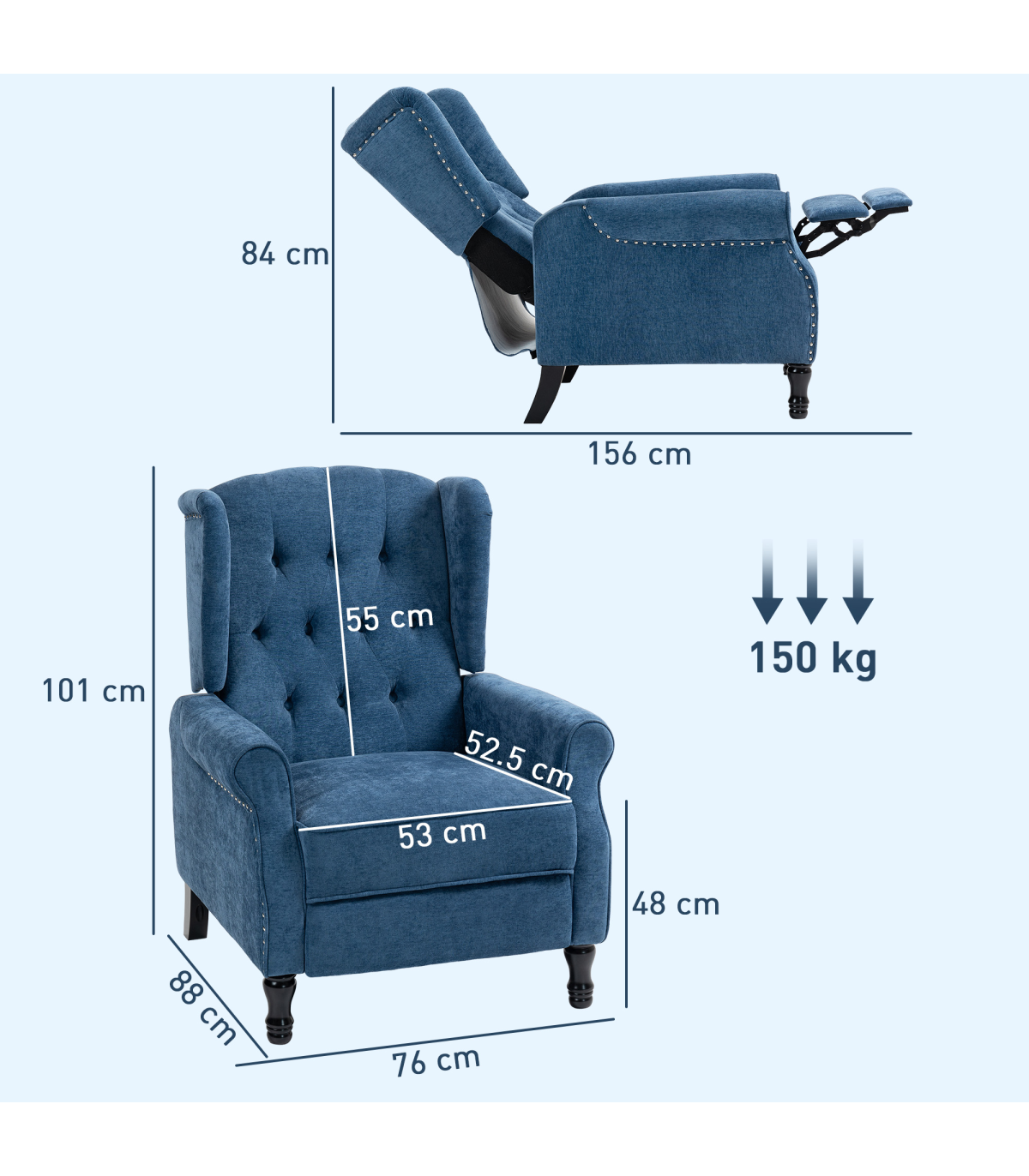 ● Reclining Dimension: 76W x 156D x 84Hcm