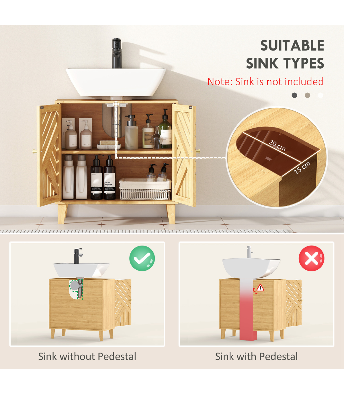 ● "U" Cut-Out Size: 15W x 20D cm
