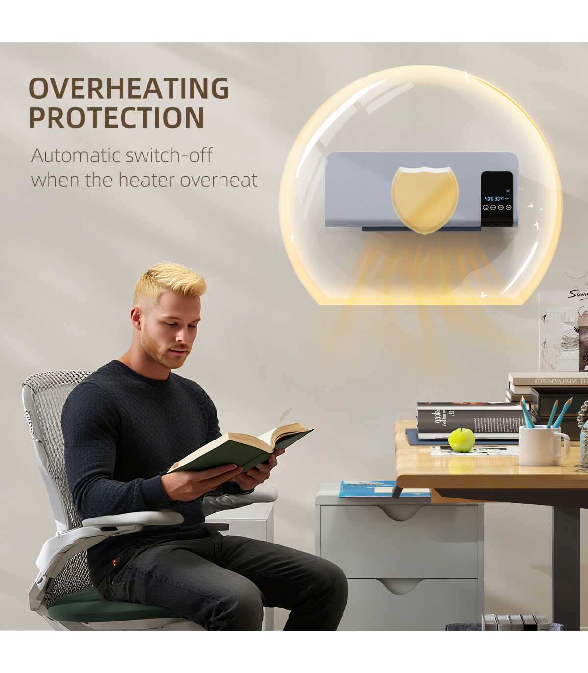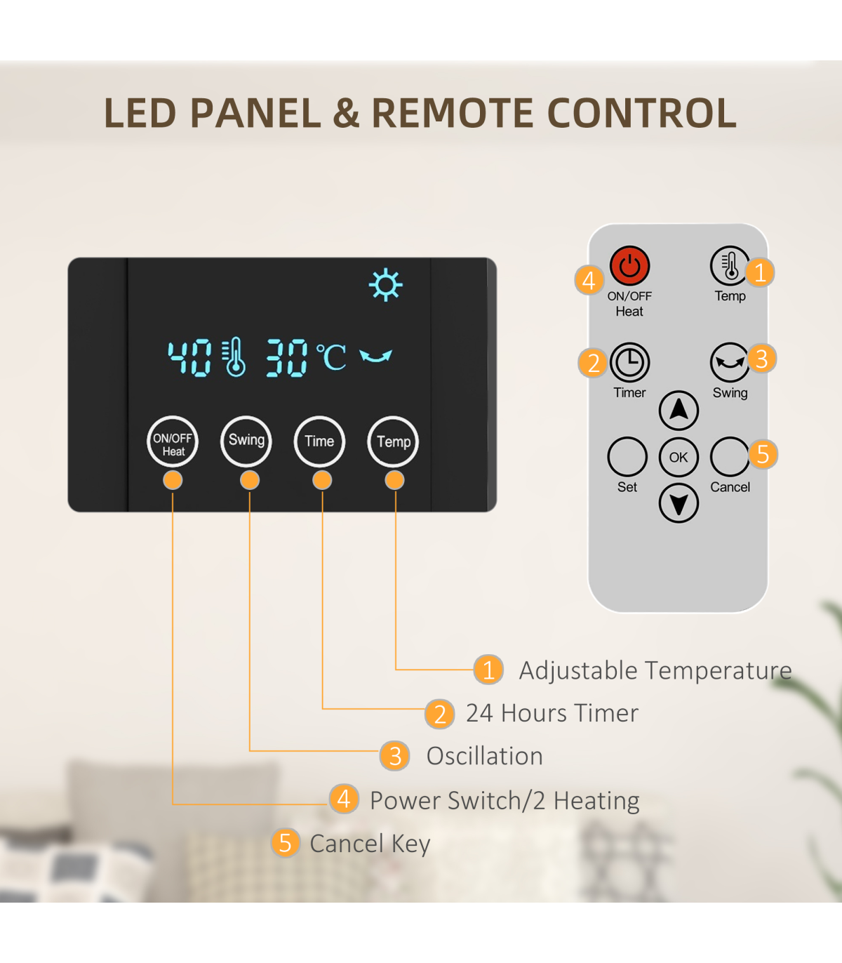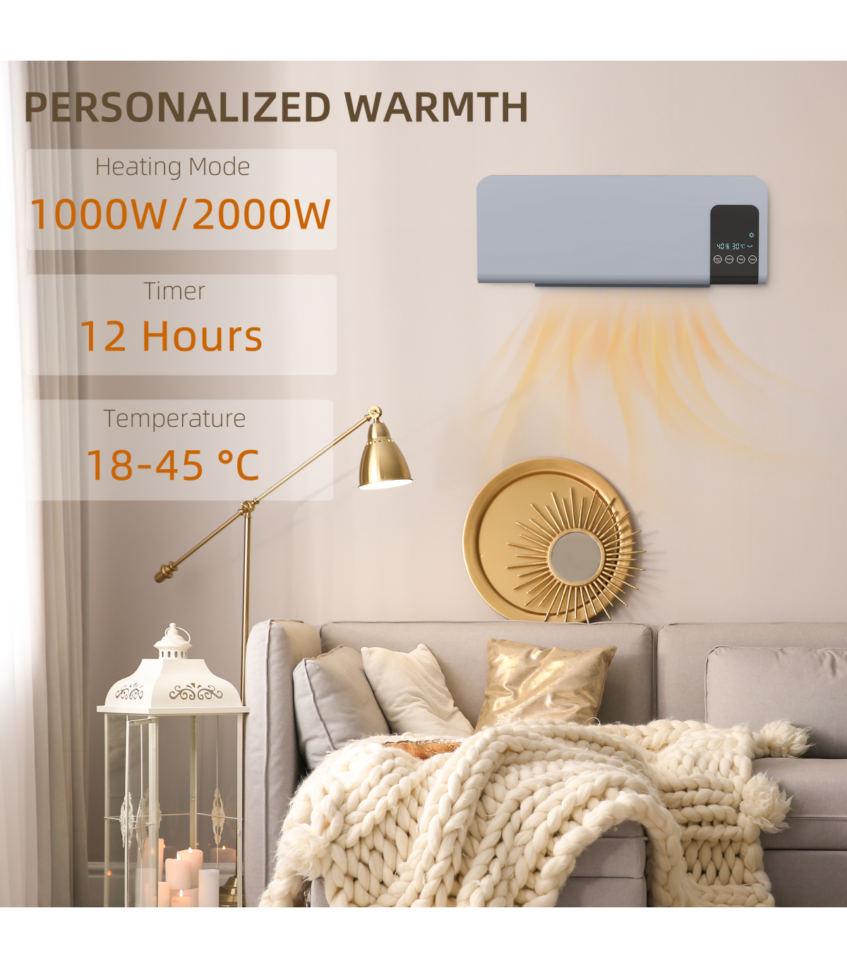 ● 12-hour timer: schedule when you want heater on and off