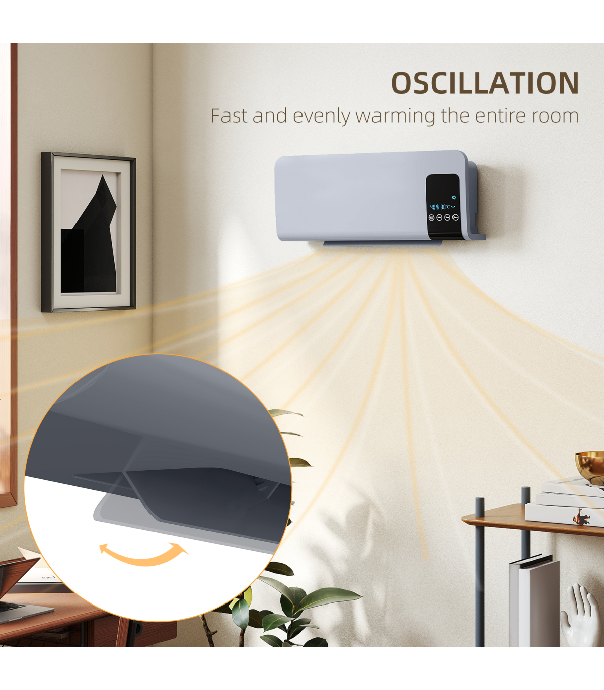 ● Oscillating movement: space heater covers a larger area. Also heats space quicker