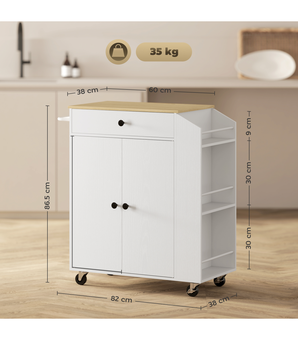 ● Weight Capacity: 5 kg (drawer), 5 kg (shelf), 10 kg (top), 10 kg (bottom), 5 kg (spice rack), 35 kg (total)
