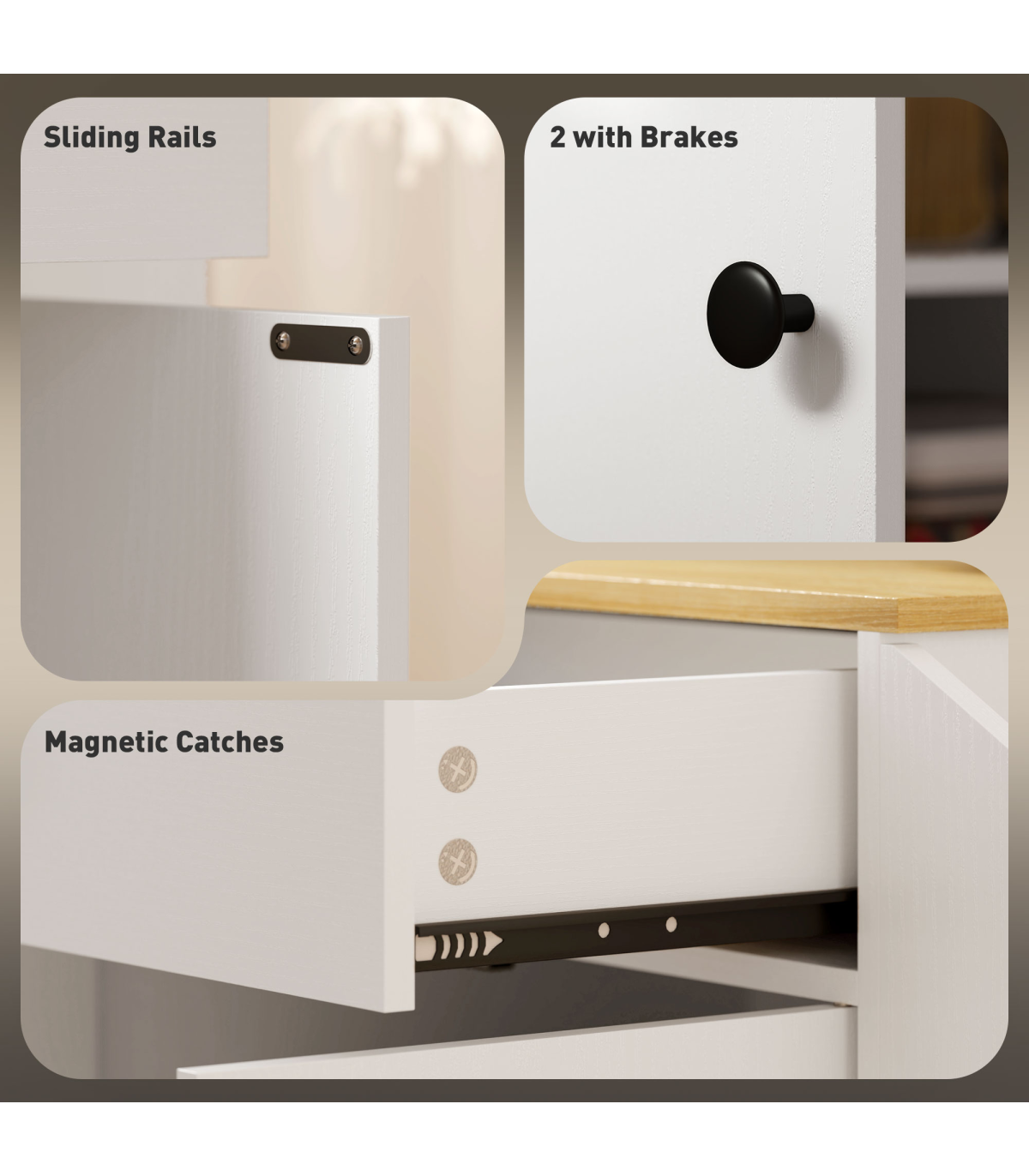 ● Four wheels enhance mobility, two of which are lockable to ensure stability