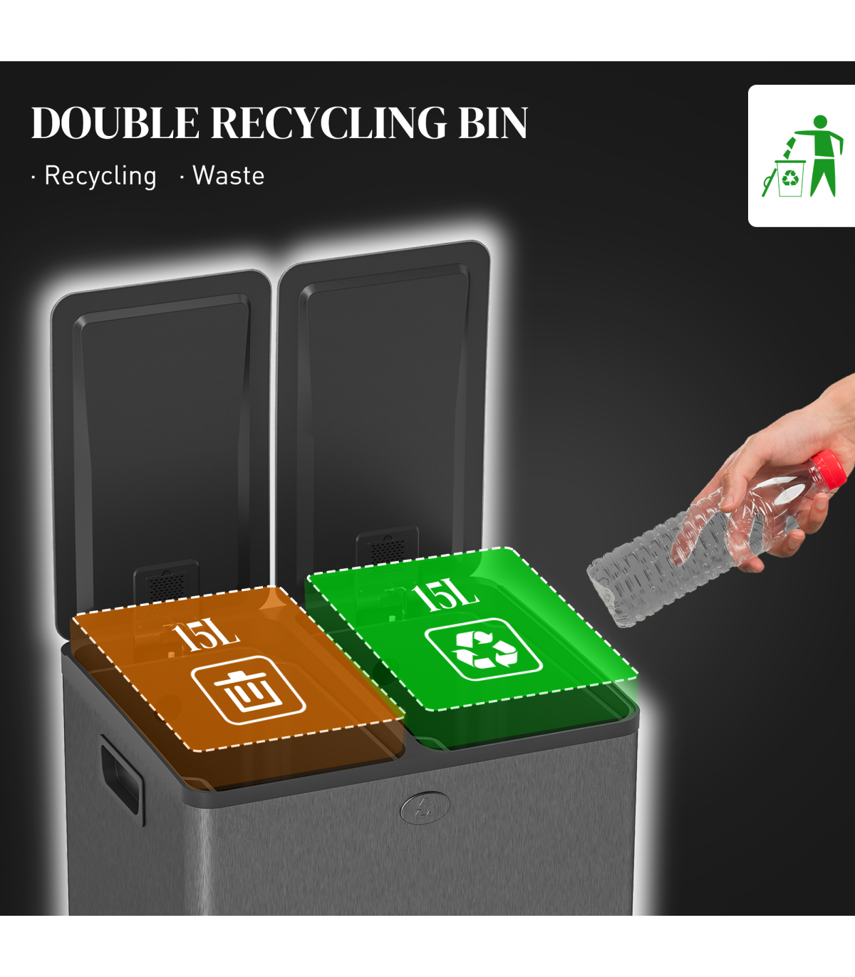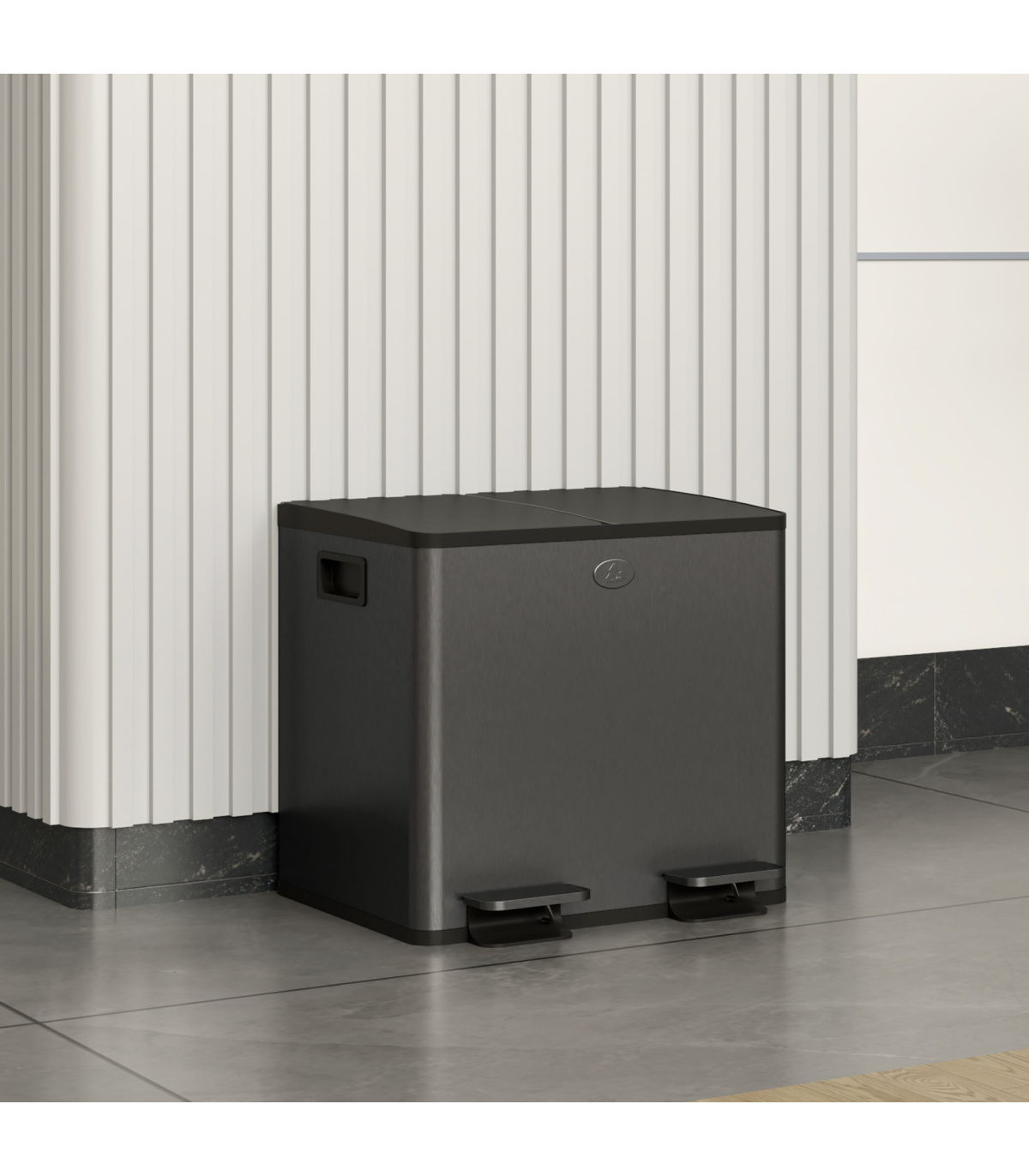 ● Stainless steel structure makes double bin robust. Sleek polished finish. Resists fingerprint marks for hygiene
