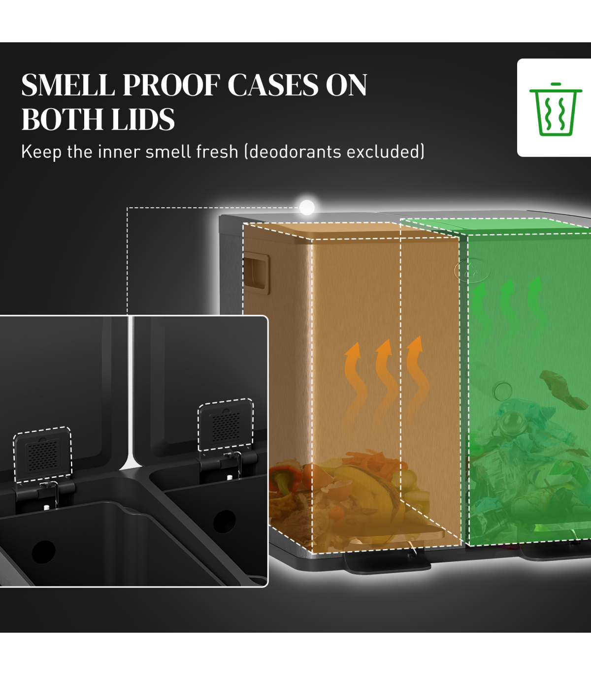 the two-compartment design allows you to separate waste as needed. Place deodorisers in the lid slots to keep the smell fresh, with a stay-open option for super easy cleaning. So, when you feel stuck on space, go for this small but mighty dual rubbish bin.
